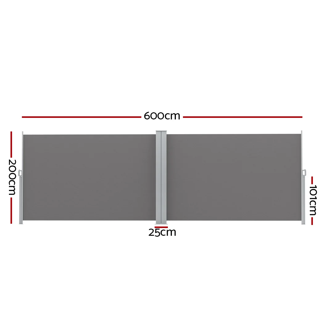 Made from UV-resistant and tear-resistant polyester with robust steel frame, our Instahut Retractable Double-sided Awning is perfect for outdoor application. It is excellent at blocking prevailing wind and low-lying sun, as well as providing additional privacy. It has a stable base and can be installed at flexible angles of up to 90 degree. The awning has a width of 6m and has an automatic roll-back function for easy keeping.