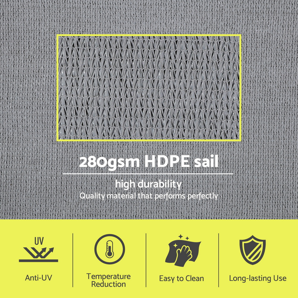 Set sail into the sunset. A simply beautiful experience. Similarly, that’s also true with our Shade Sail.Designed to be a permanent covering, our Shade Sail is made from highly breathable 280g/m2 commercial grade 100% polyethylene fabric. This allows cooling air to pass through and help keep the under shade areas well ventilated. The material also blocks up to 98% of harmful UV rays and is all-weather proof to suit Australian climatic conditions. Plus, the material is further enhanced with Americhem UV-resistant additive from the USA to prolong its UV protection effectiveness.Keeping the shade in place are marine grade 8mm stainless steel buckles on each corner with a 38mm webbing that provides high durability and extended performance.Unlike other shade sails that compromise on quality and cost, our Shade Sail takes shading seriously and will not settle for inferior materials or components. Especially when your safety is one of our major concerns. There is definitely one right for your deck, patio, pool or entertainment area. Shade Sail on with us.Note: Pls noted that there is 2-piece spliced.FeaturesCommercial grade shade cloth 280g/m2Sturdy design of 38mm webbed perimeter edgingRobust 8mm stainless steel bucklesEasy storage and transportationUV blockageEasy to setupWeather resistantSpecifications:Brand:InstahutShape: RectangleSize: 4X7MColour: GreyAssembly Required: NoPlease note: This item comes in 1 package. Package Content4M x 7M Shade Sail x1This product comes with 1 year warranty