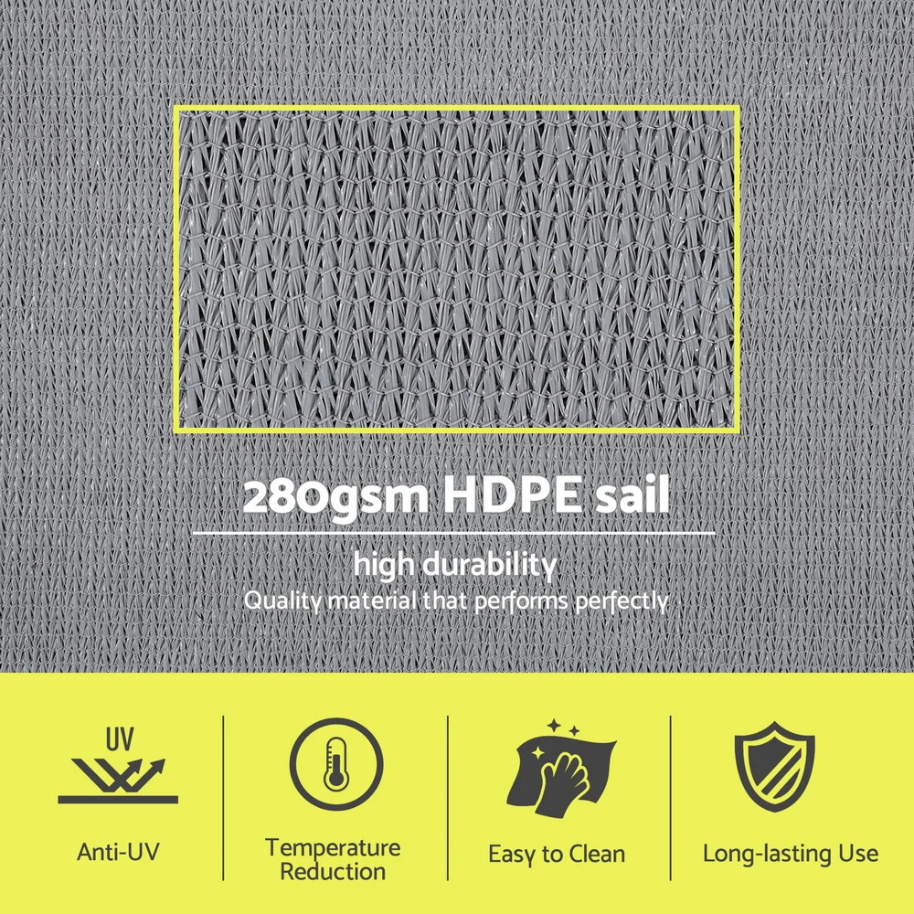 Designed to be a permanent covering, our Shade Sail is made from highly breathable 280g/m2 commercial grade 100% polyethylene fabric. This allows cooling air to pass through and help keep the under shade areas well ventilated. The material also blocks up to 98% of harmful UV rays and is all-weather proof to suit Australian climatic conditions. Plus, the material is further enhanced with Americhem UV-resistant additive from the USA to prolong its UV protection effectiveness.