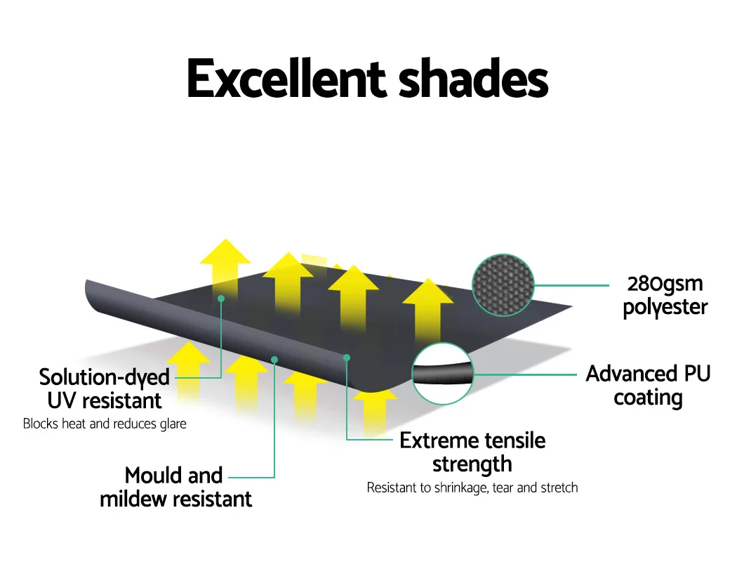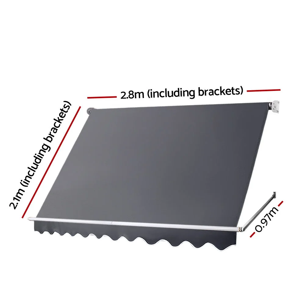 Measuring 2.8m x 2.1m, our Retractable Pivot Arm Awning comprises a sturdy steel frame and high-quality and highly breathable 100% polyester fabric shade. That’s means you get good air flow for maximum ventilation and ample cool shading as well. Both frame and shade are made UV and tear-resistant respectively and designed to be durable and longlasting in all kinds of weather conditions(Only for normal weather condition,extrem weather condition is excluded).