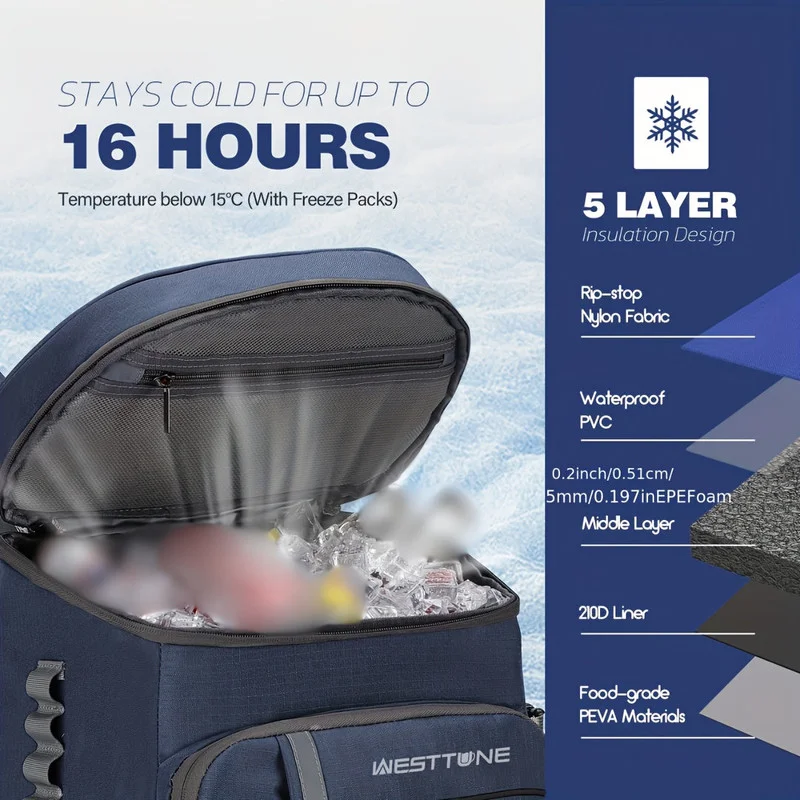 The 35-Can Blue Insulated Sports Backpack is designed for active lifestyles, built with durable oxford cloth and engineered for convenience and long-lasting cooling. Its multi-layer insulation system keeps your drinks and gear cool, while the spacious interior and multiple compartments provide organized storage on the go. Whether you're hiking, camping, or heading to a game, this backpack delivers unmatched comfort and functionality.