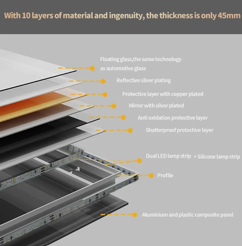 Features: Touch Sensor, Anti-Fog, Backlit Light, Led Strip