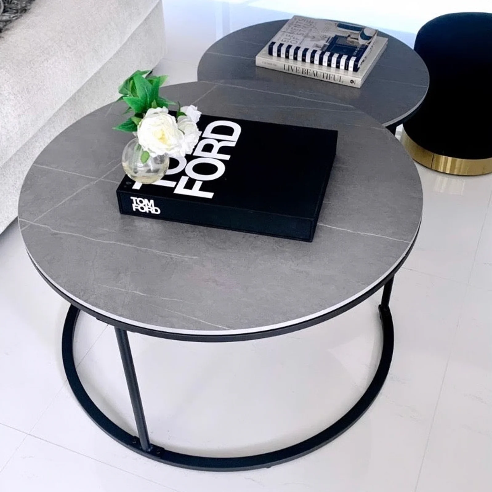Colour: Grey Sintered Stone Marble + Black Iron Base