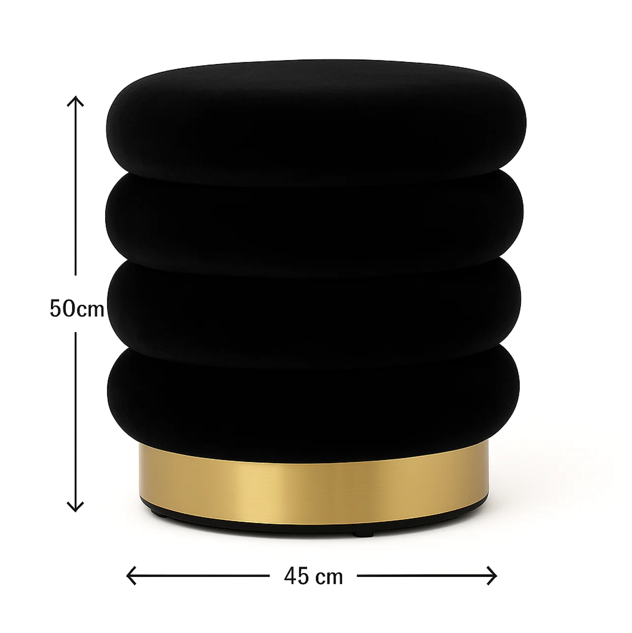 The Roma Round Ottoman blends deep black velvet upholstery with a refined gold-metal base, adding a touch of timeless elegance to any room. Its plush, cushioned seat offers comfortable seating while its compact round form integrates seamlessly into living rooms, bedrooms or dressing areas. Whether used as a footstool, extra seat, or statement accent, Roma delivers understated luxury and versatility for modern interiors.