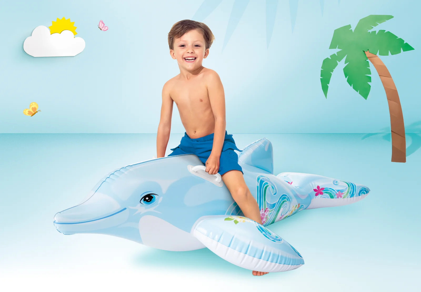 The Lil' Dolphin Pool Float from Intex is perfect for children, making for hours of fun in the water. With a heavy duty handle for excellent grip and extra safety, beat the heat this summer with Intex!