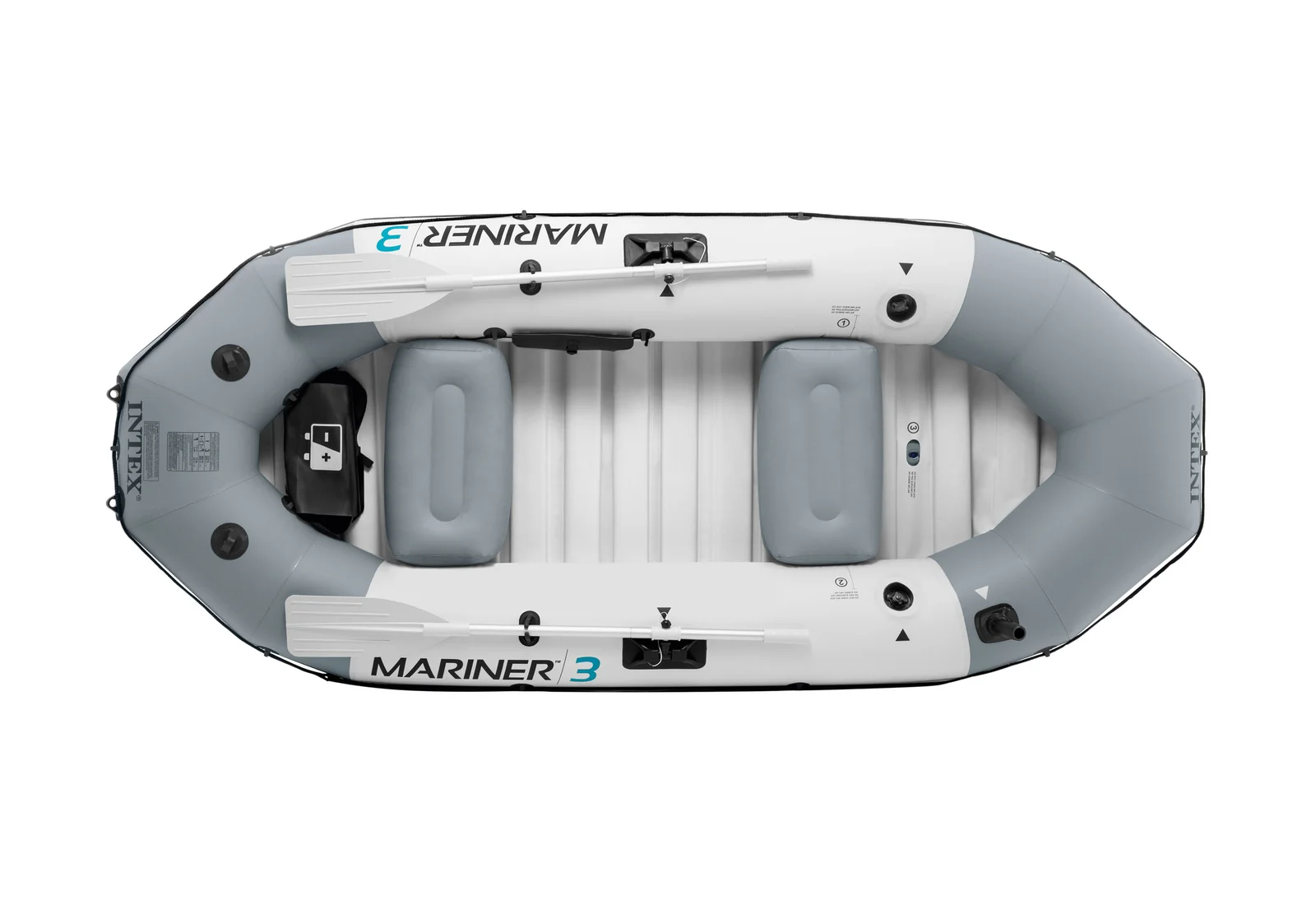 INTEX� Mariner 3 Boat Set 68373The Intex Mariner 3 Rigid Inflatable Boat features a hard rigid floor, making it their best hunting/fishing boat by far. Here's why: the rigid floor in the Intex Mariner 3 inflatable boat provides unmatched stability so you can stand up and cast during calm stretches of the river.