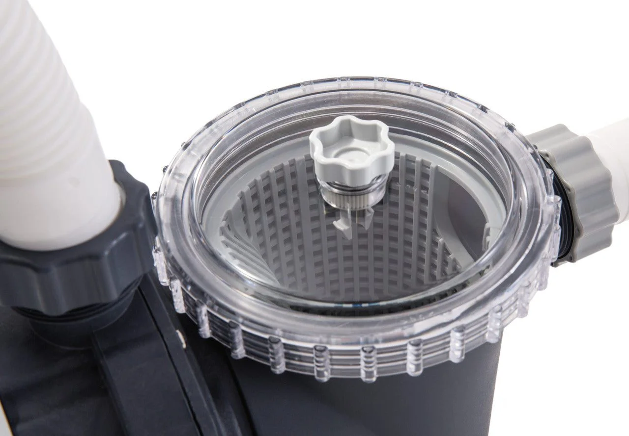 Keep your above ground pool water clean, soft, and refreshing with the Krystal Clear Sand Filter Pump by Intex�. The sand provides excellent water filtration as the 6-function control valve allows the pool owner to: filter, backwash and rinse, recirculate, drain and close the system. The built in 24-hour timer adds to the hassle-free experience with maintaining a cleaner pool. The strainer basket provides easy-cleaning, and prolongs the life of the sand. The Krystal Clear Sand Filter Pump generates a pump flow rate of 2,800 gallons per hour, ideal for above ground pools. This pump requires virtually no maintenance except replacement of sand every 5 years.