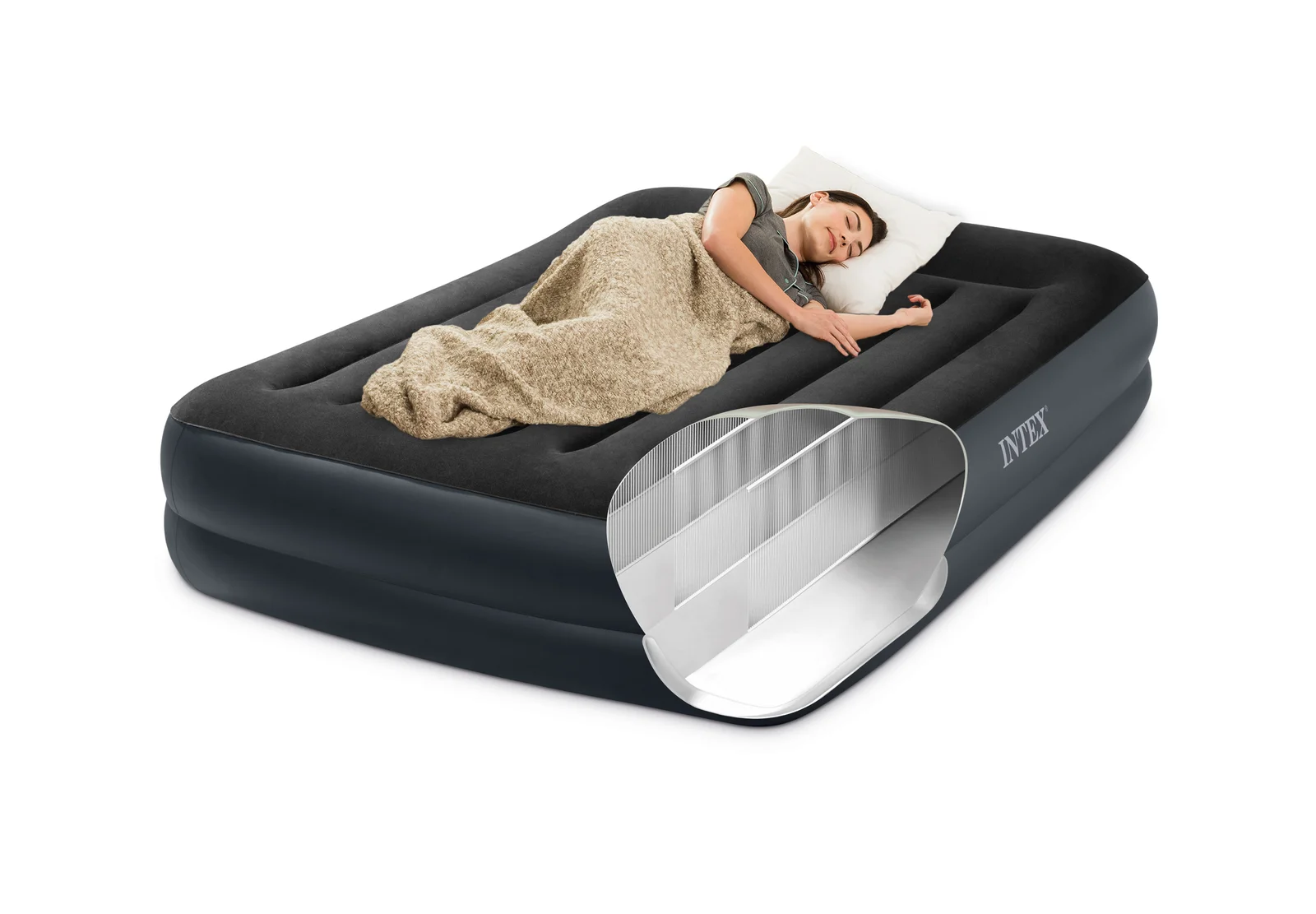 - Inflatable queen airbed for home use engineered with Fiber-Tech interior construction