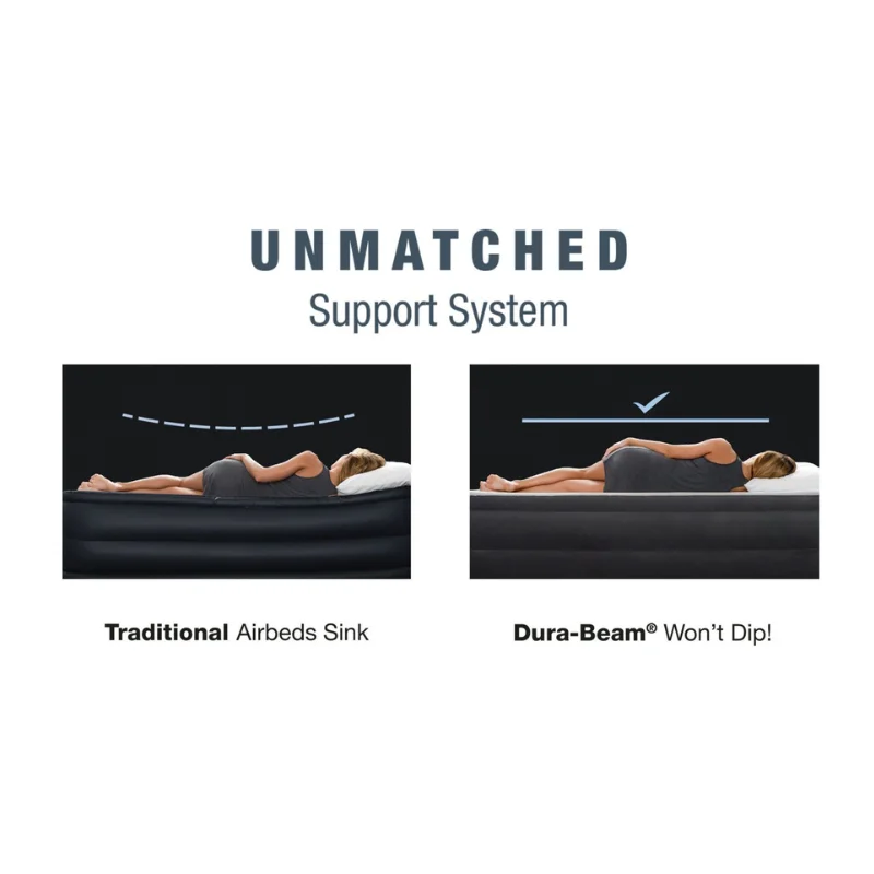 Provide your guests with a cozy Comfort-Plush Elevated Airbed during their next visit. Engineered with the Dura-Beam Technology, which is comprised of thousands of high-strength polyester fibers, resulting in amazing durability for years of lasting comfort, the Comfort-Plush Series provides enhanced comfort, stability, and support. This ultra-lightweight bed adjusts to your personal firmness preference for an incredible night's sleep. For added convenience, the powerful internal pump easily inflates and deflates the airbed within 4 minutes.Details:
