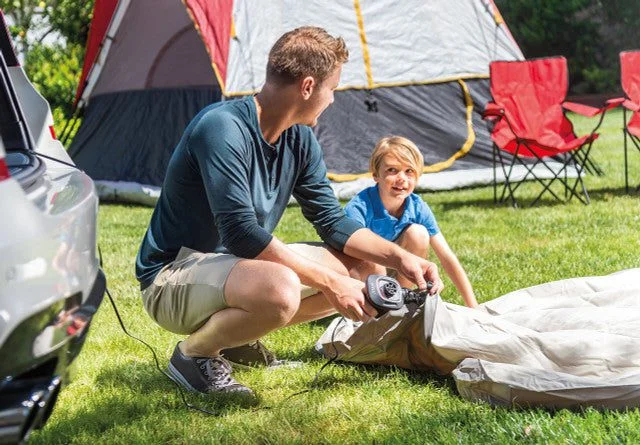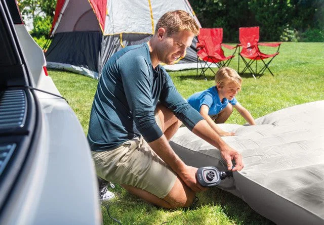 This car-powered Intex Quick-Fill DC Electric Air Pump is perfect for outdoors use for inflating air-mattresses, rafts, and more. The sleek and compact design fits perfectly in the palm of your hand. Simply connect the 12-volt DC power plug to your car's power outlet and start inflating or deflating. The included adapter with 3 nozzles makes this pump compatible with many different inflatable products while the 650 L/min max air flow gets the job done quickly. Never get caught trying to find a power outlet or inflate manually, get the Intex Quick-Fill DC Electric Air Pump and get the job done quickly.