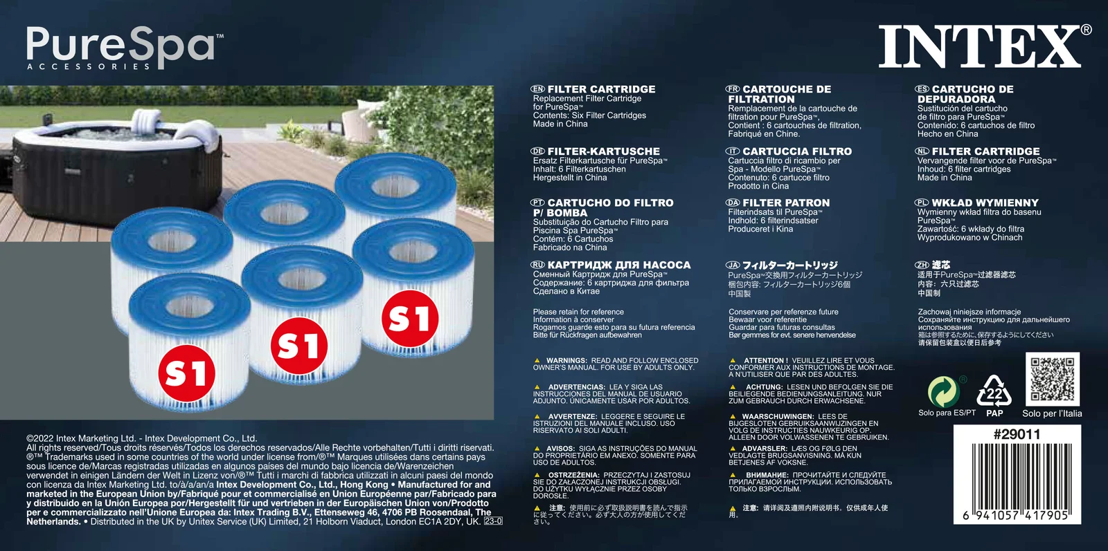 - Pack of 6 x genuine Intex Type S1 filter cartridges