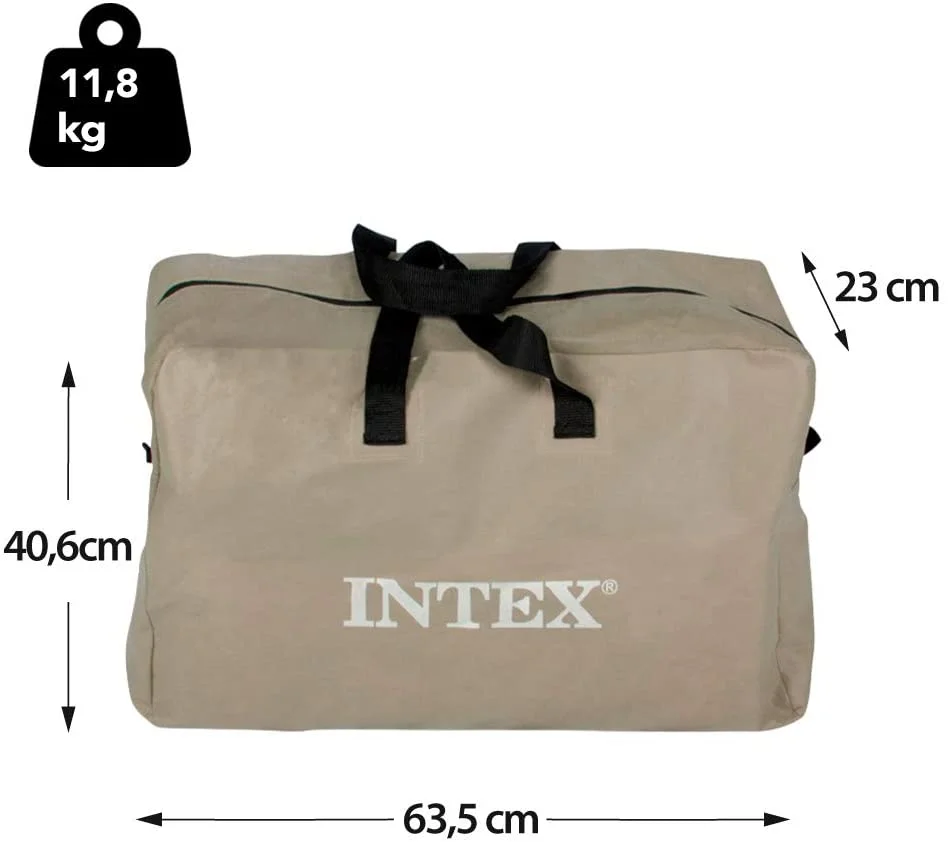 Made with rugged vinyl construction and built for performance, this sturdy kayak has an inflatable I-beam floor, a low-profile deck and high-buoyancy side chambers for stability, comfort and function. A removable skeg provides exceptional directional movement, while an adjustable, inflatable seat with a backrest is included for comfortable seating. A grab line at each end is provided for your convenience, as well as a cargo net for extra storage, and a repair patch kit. The Challenger K1 Kayak provides added accessories including: one 86 inch aluminum paddle and an Intex high-output pump for easy inflation and deflation.