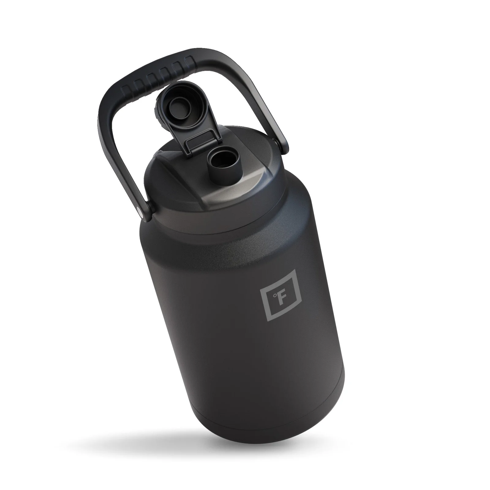 Iron Flask Bottle with Spout Lid, Midnight Black, 128oz/3800ml. Whoever said “bigger isn’t always better” obviously never got their hands on an Iron Flask One-Gallon Water Bottle. This titan of thirst quenching holds a whopping 128 oz of your favorite beverage in a vacuum-insulated, rough-and-tumble container that can stand up to any adventure. And with a huge array of colors, it’s easy to match your bottle to your personal brand. With the Iron Flask 128 oz water bottle, the only thing you need to worry about is how close you are to a bathroom.