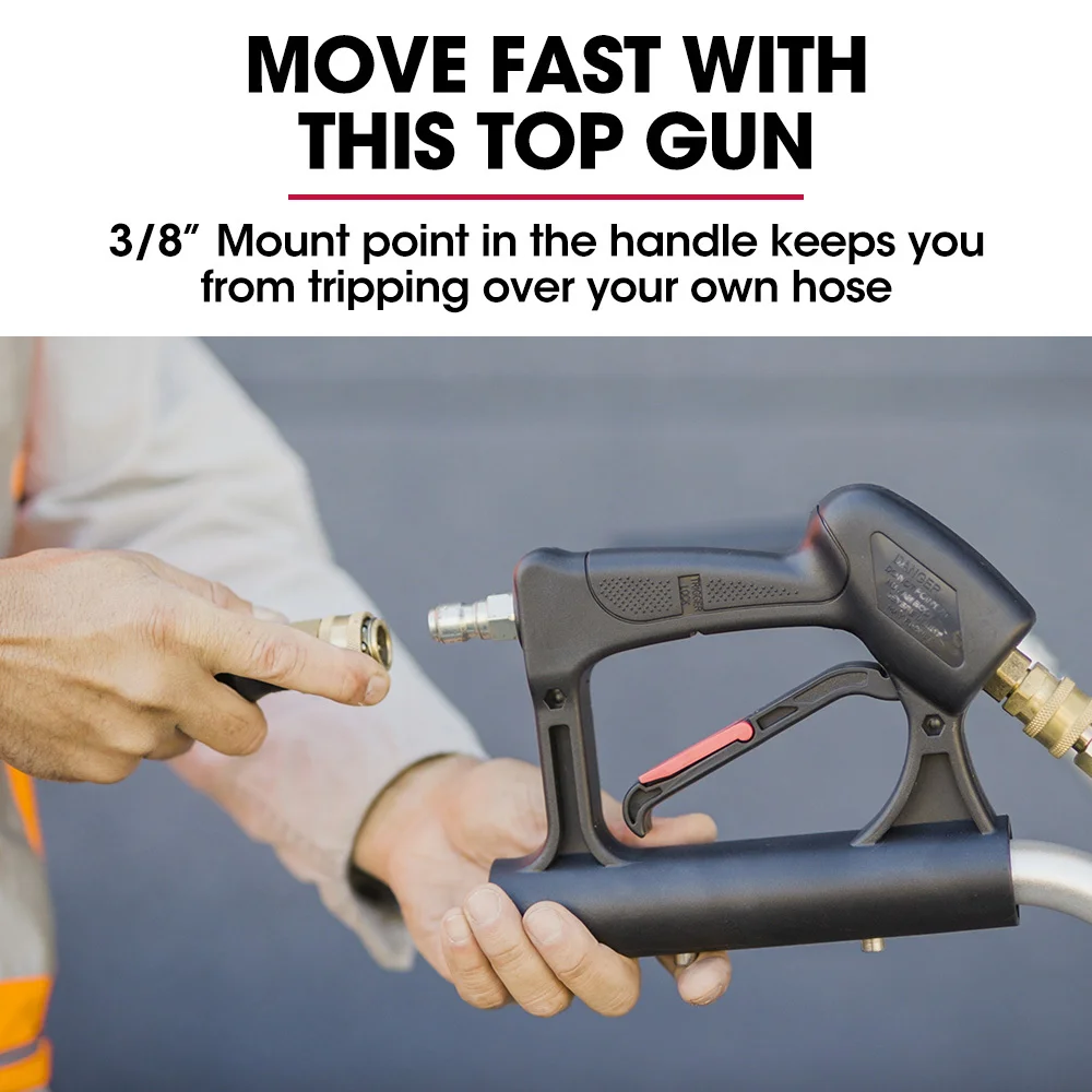 It has a standard ¼" quick connect fitting for use with most pressure washers. A minimum operating pressure of 2000 PSI @ 8 LPM ensures fast effective cleaning. That means you save water by saving time.