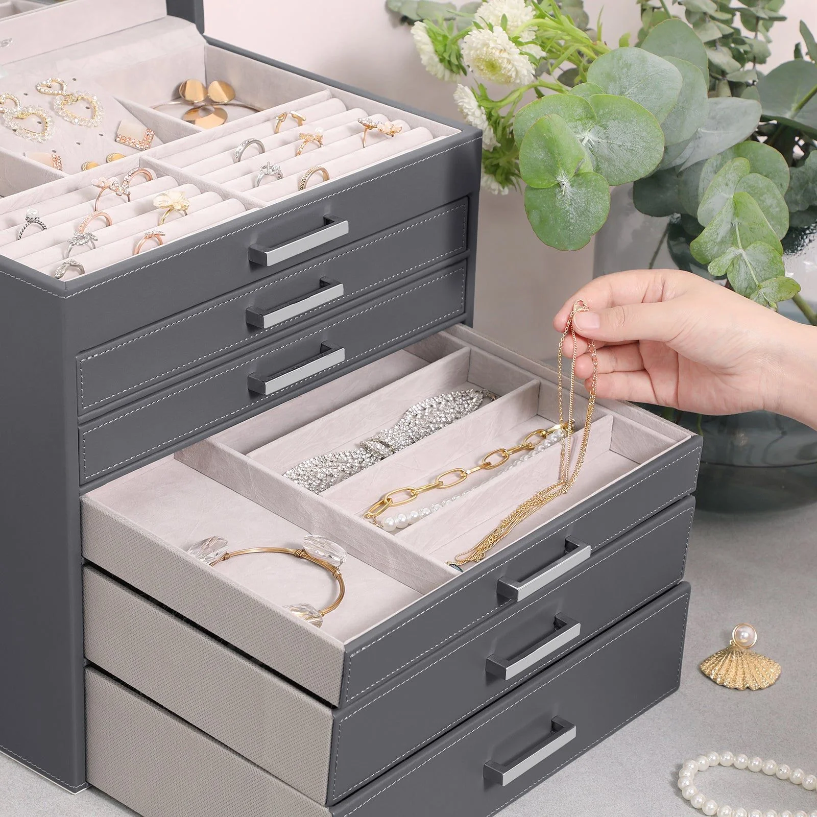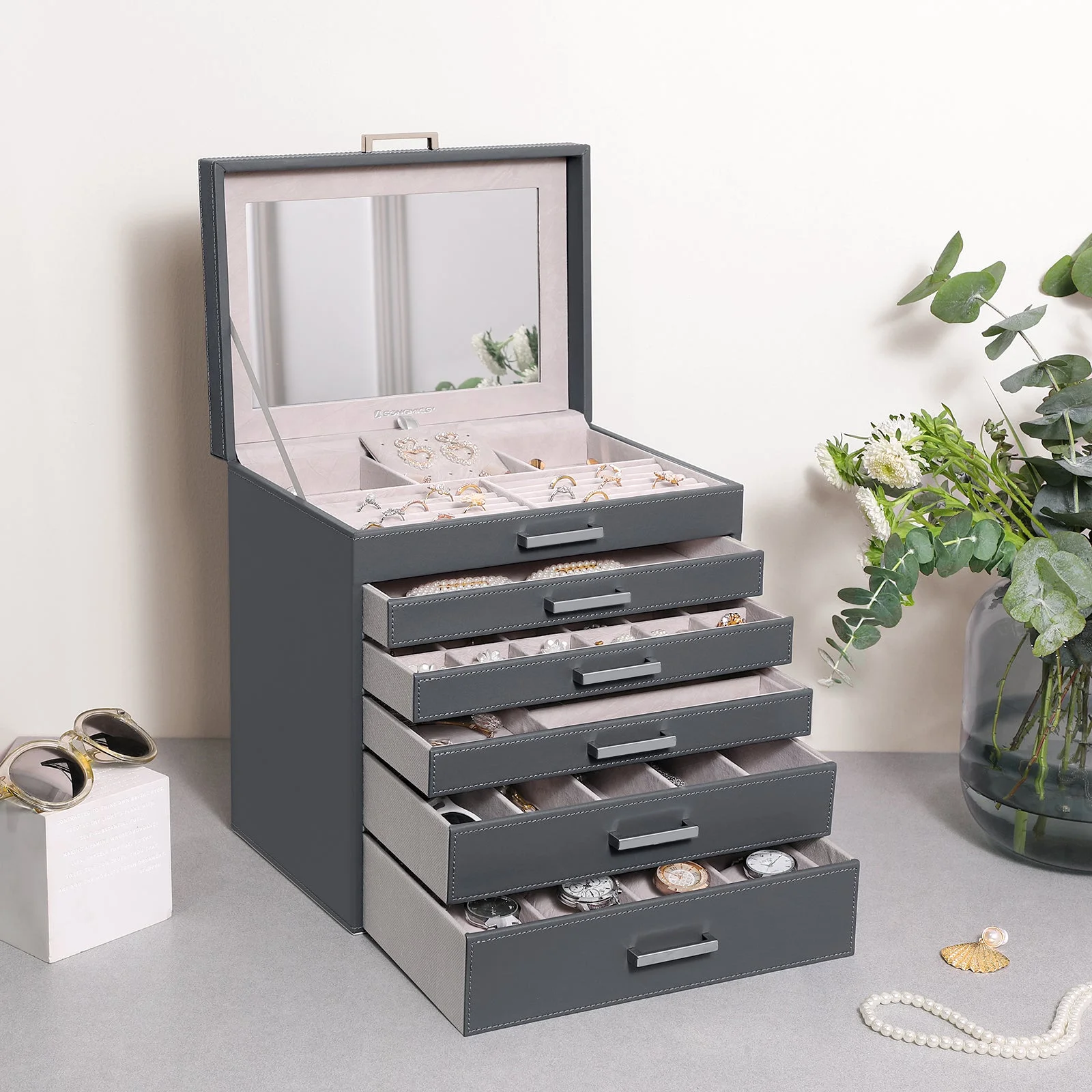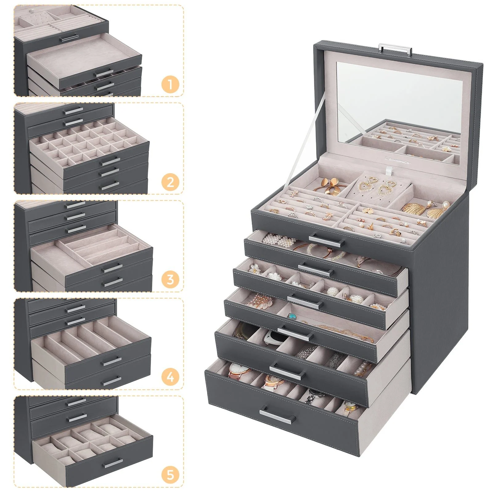 Jewellery Grey Box, 6 Layers, 5 Drawers