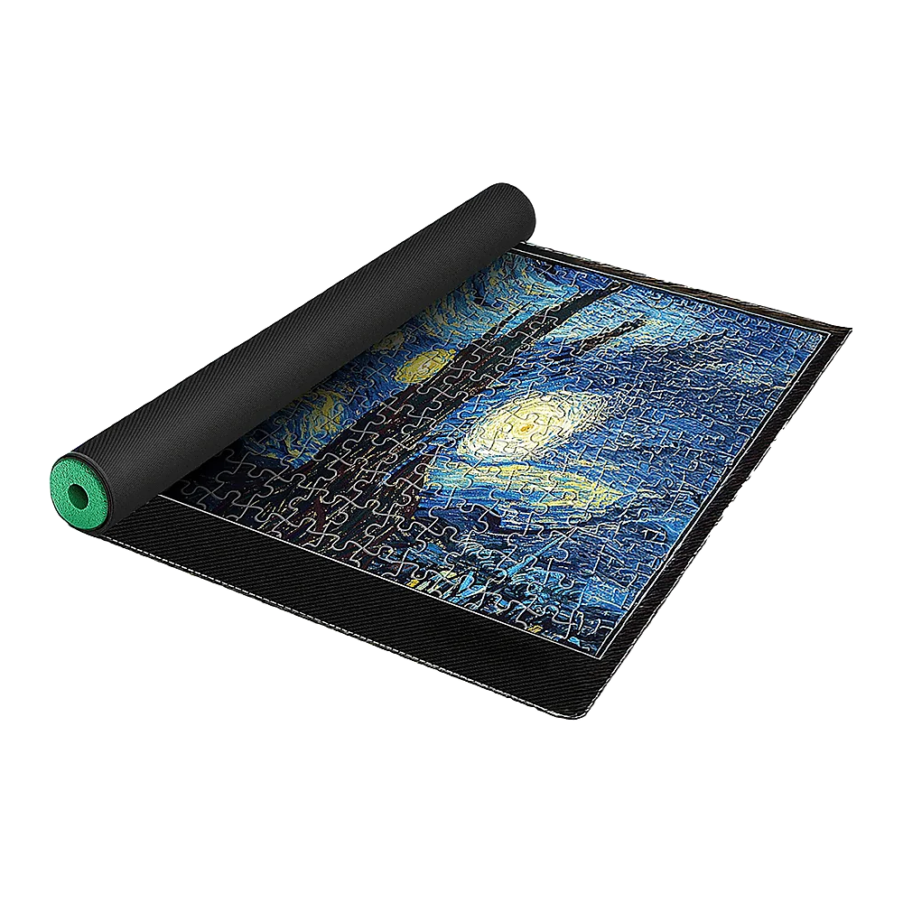 Assemble your puzzle directly on the high-quality non-slip felt surface, then simply roll it around the tube when it's time to pause or put it away. The included straps keep everything tightly secured for safe storage or travel. This portable puzzle mat supports most standard puzzles up to 1500 pieces*, making it ideal for casual puzzlers and enthusiasts alike.