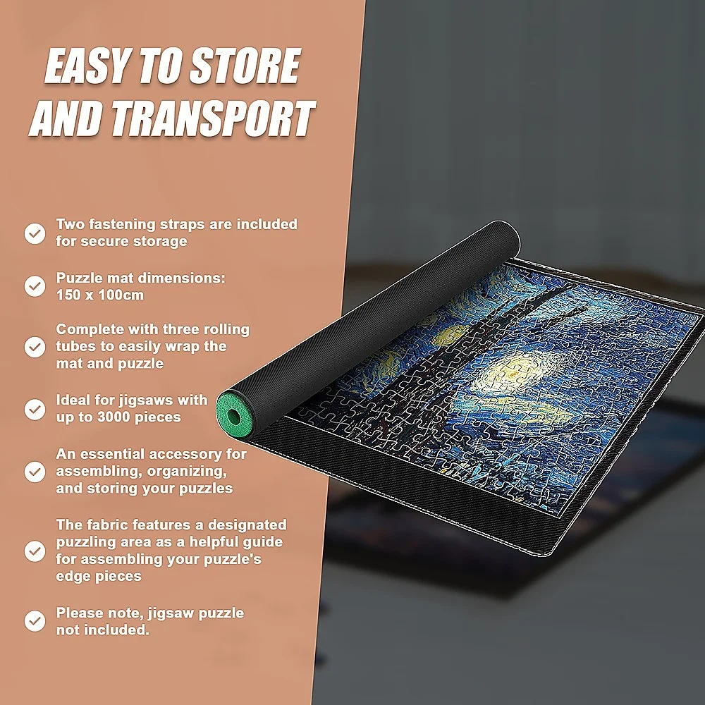 Simplify your puzzle-solving experience with our premium jigsaw puzzle roll-up mat. Designed for easy puzzle storage and transport, this set includes a durable puzzle felt mat, a rollable storage tube, and secure fastening strapsperfect for preserving your progress without losing a single piece.