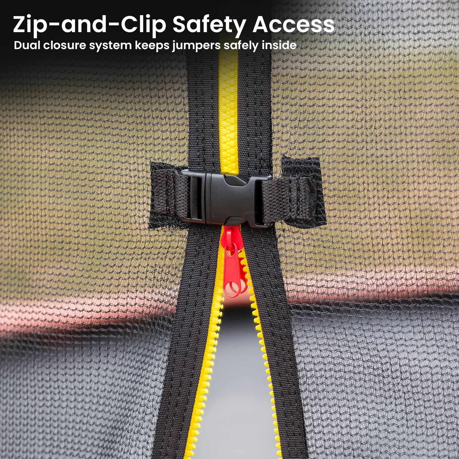 - Trampoline Entrance: Zip-and-clip safety lock