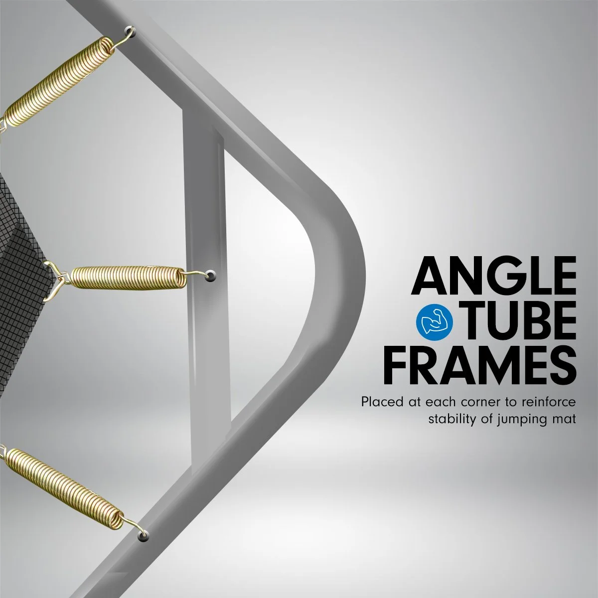 This trampoline features a spacious rectangular sized jumping surface and U-shaped linked legs for optimal support. Great for safe, family fun our trampolines are great way to get kids off those electronic devices and outside to burn off some of that energy.