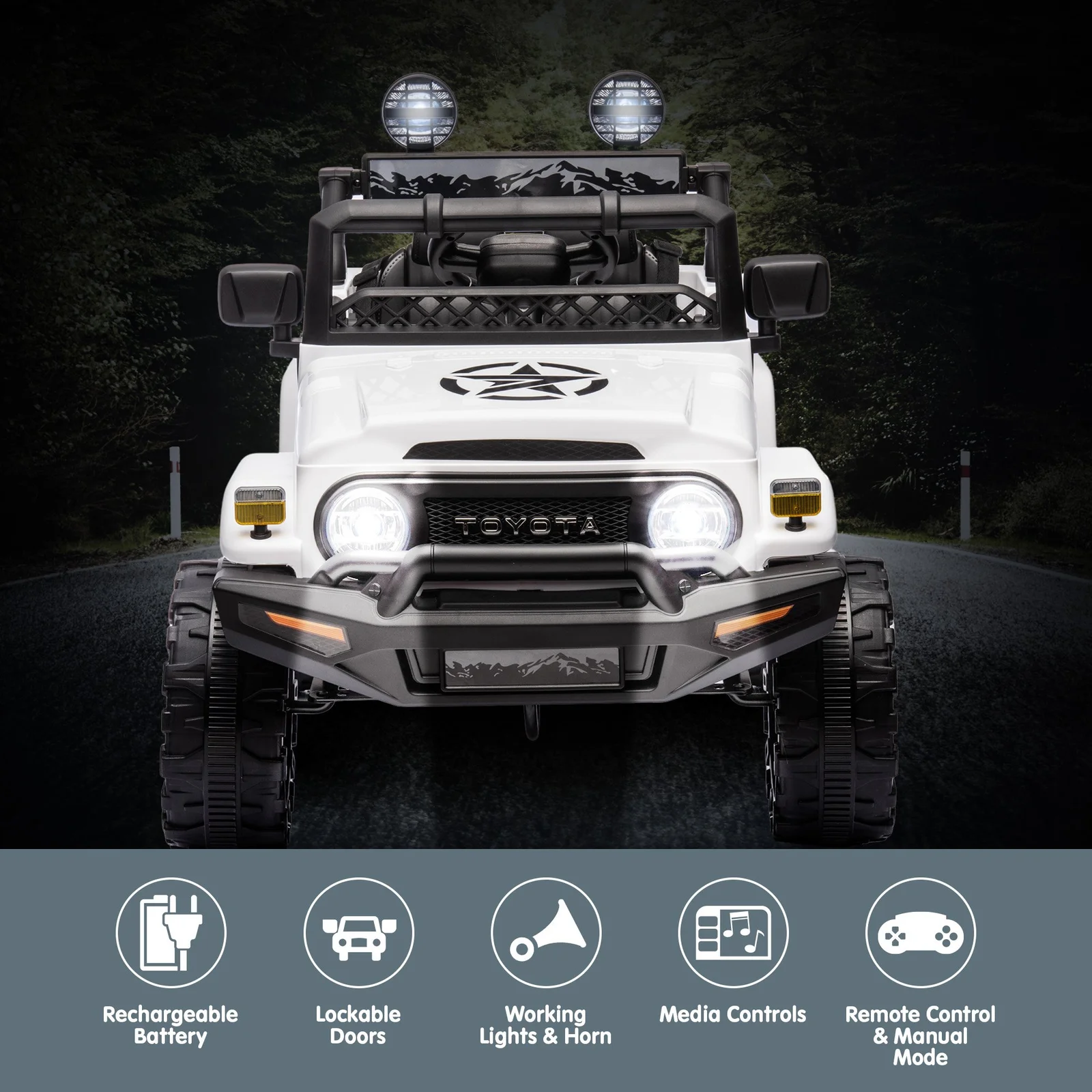 Safety is prioritised with a secure belt and back suspension. Plus, the charger and cables are SAA-certified for added peace of mind. Capture the thrill of a genuine Toyota FJ Cruiser for your speedster today.