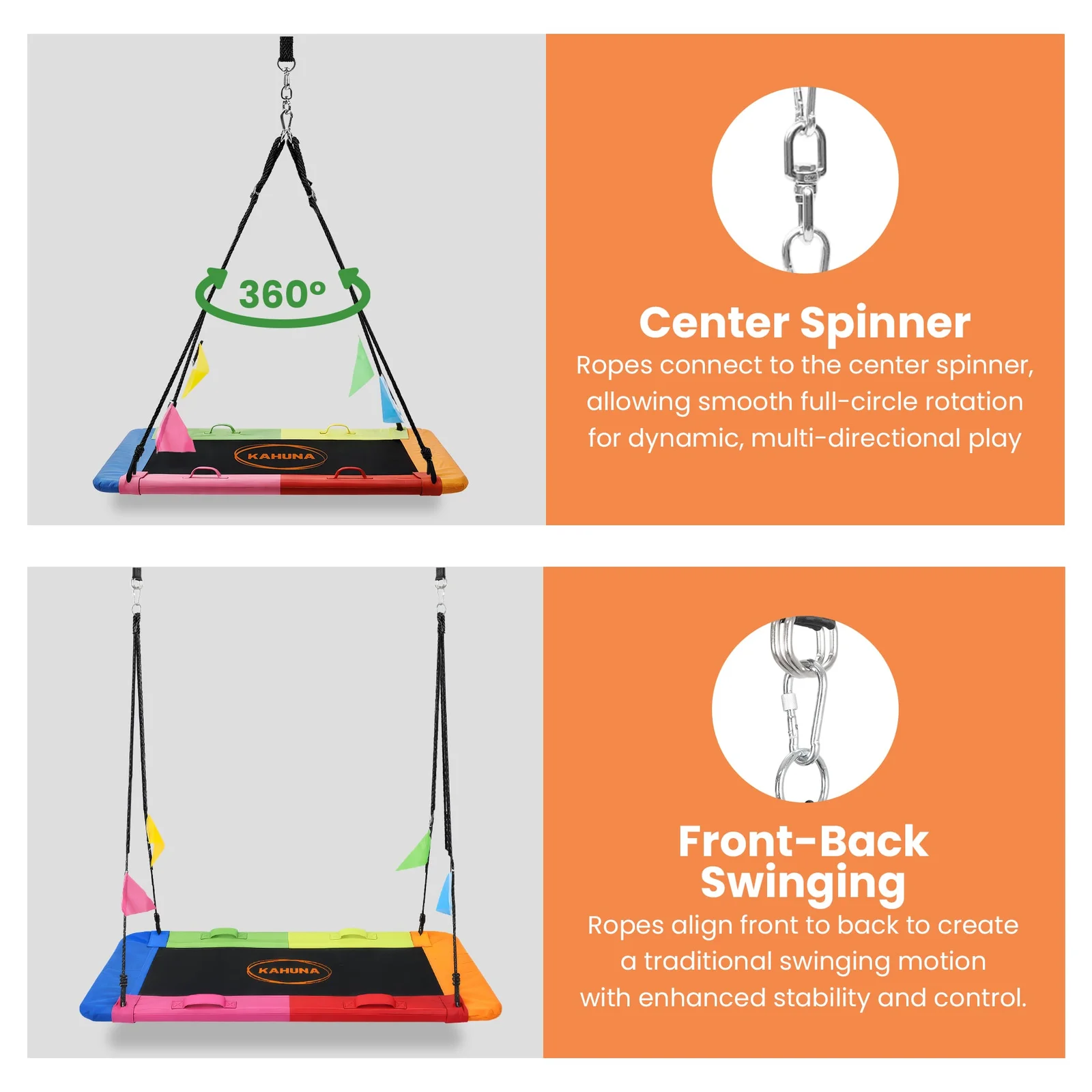 Turn your backyard into a space for active family fun with the Kahuna rectangular tree swing! Built with strong 10mm PE ropes, it offers reliable stability for long term outdoor use.