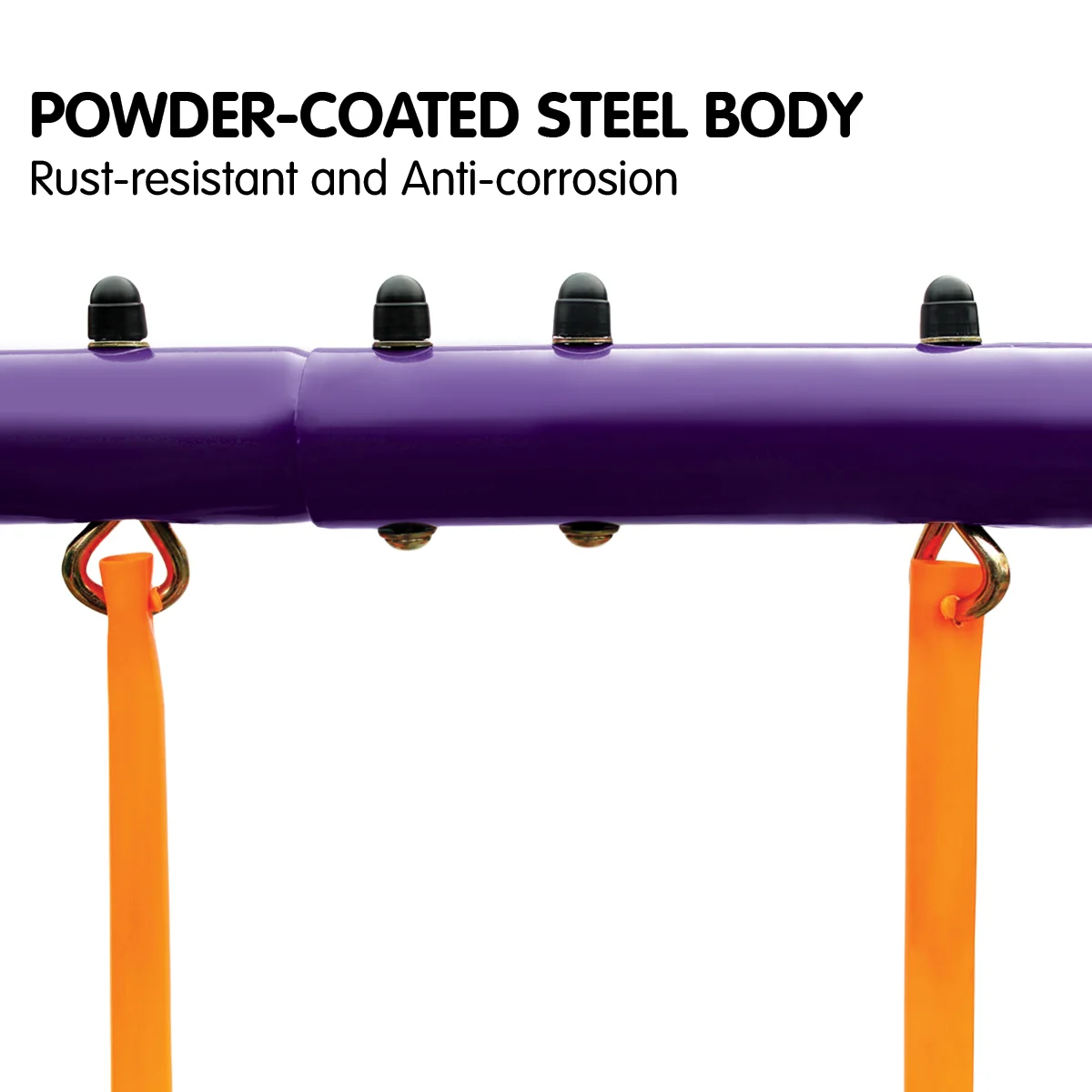 - Solid metal A-frame and chains for excellent durability