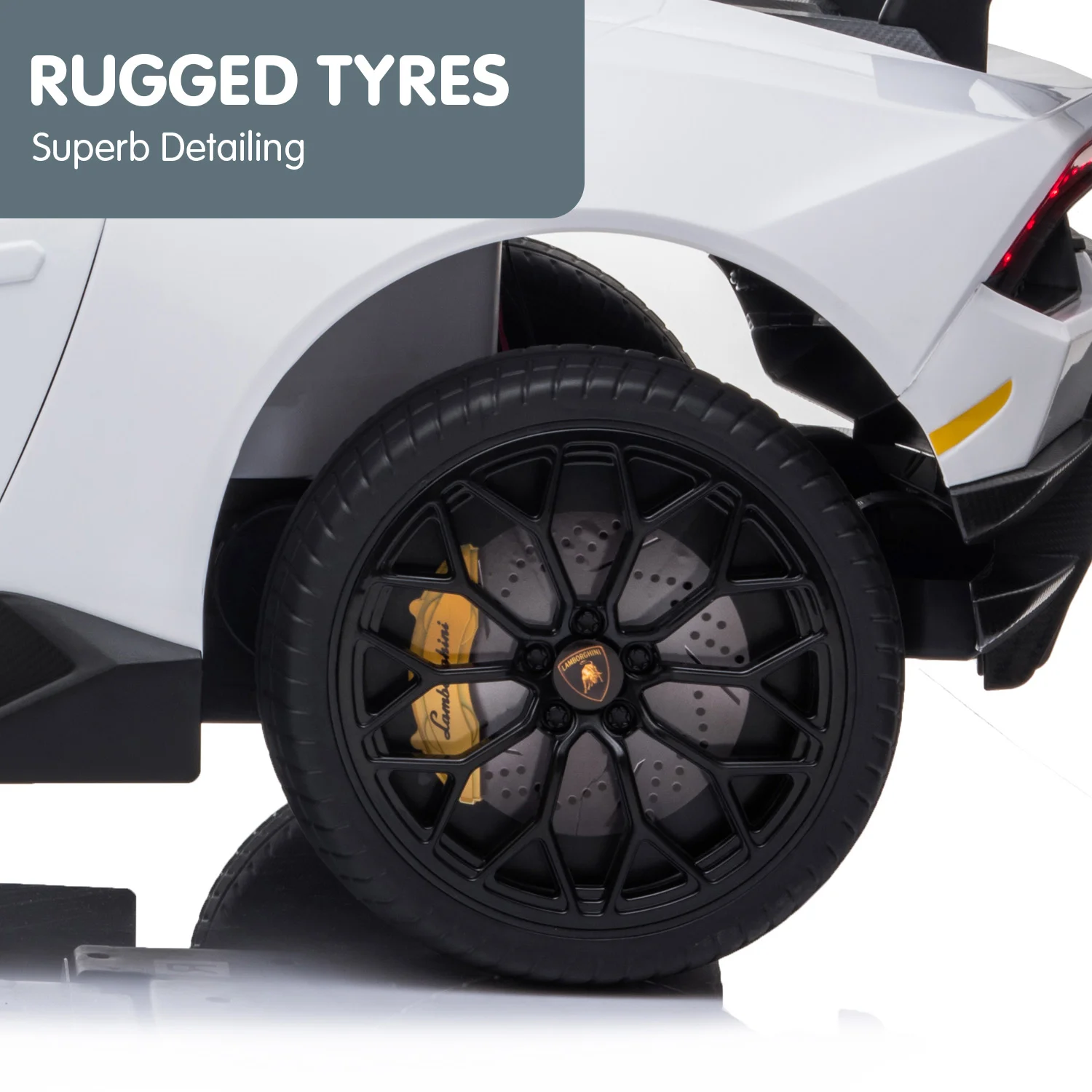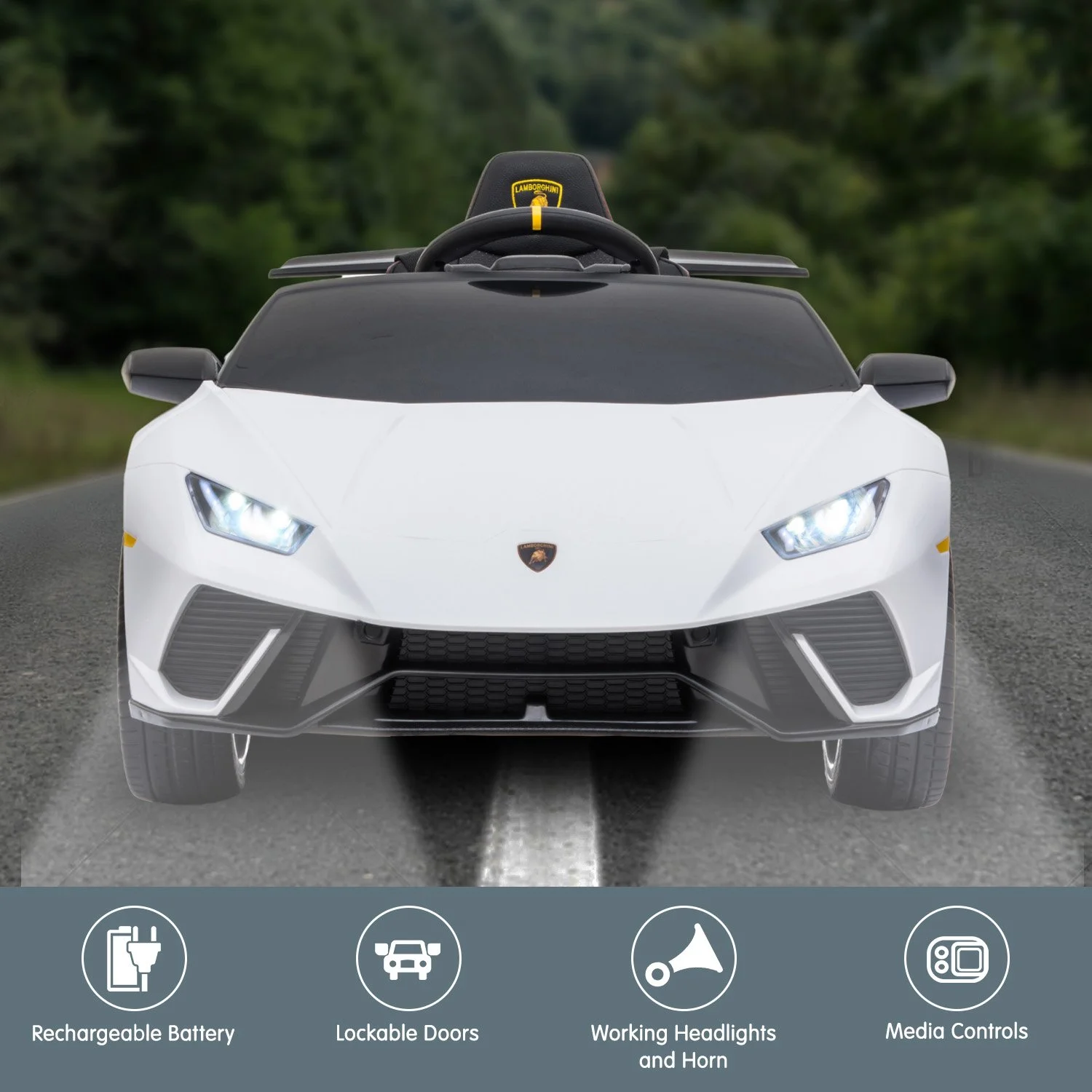 Introducing the Lamborghini Performante Ride On Car - the most awesome gift for little racecar drivers. This officially licensed replica boasts the luxurious silhouette and cool detailing of its full-size counterpart, down to the logos and wheels!