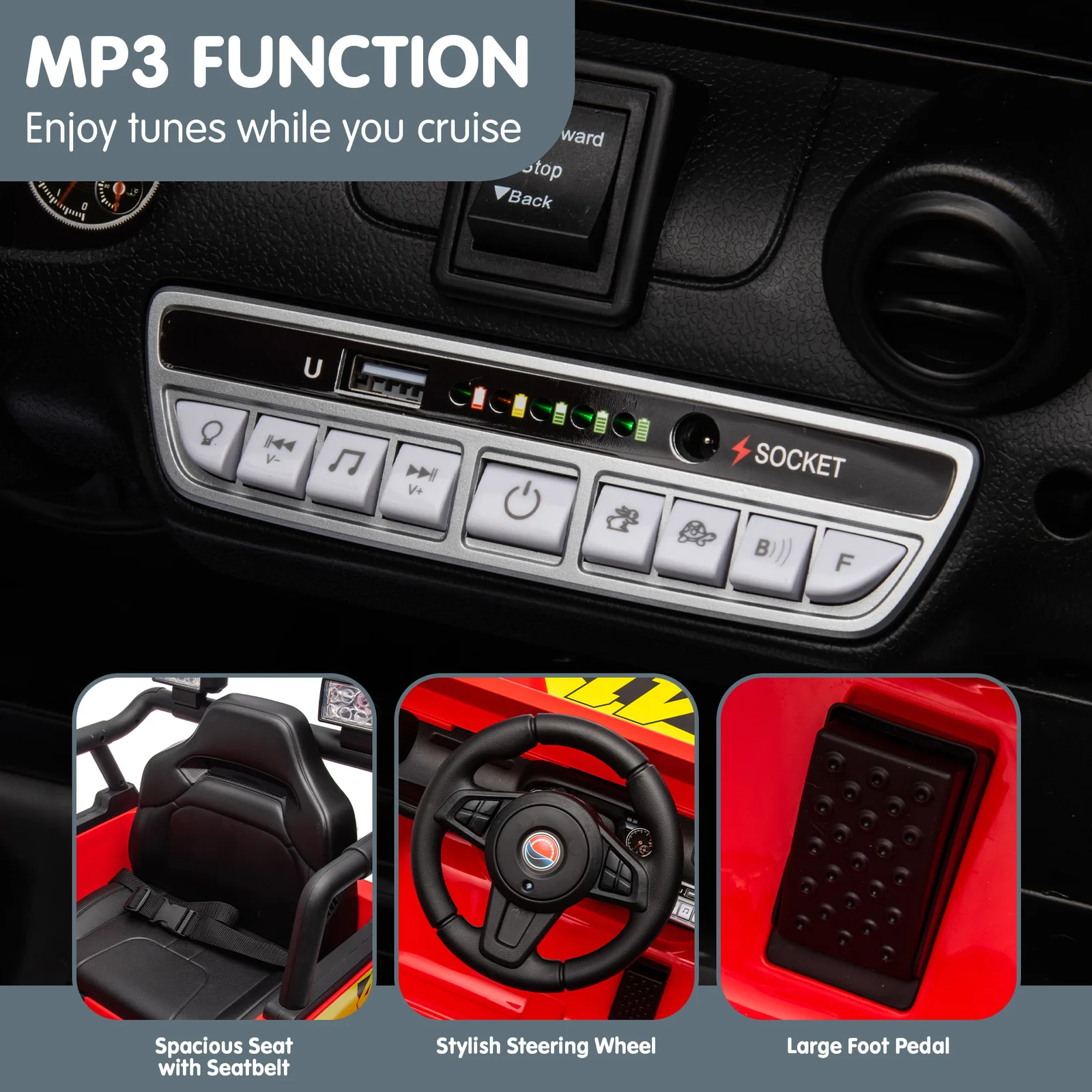 Embark on an adventure with the Kahuna S619 Gravity Ride On Car! This compact ride on is loaded with features including LED front lights, two colour-changing spotlights, a working horn and an upgraded dashboard capable of music and Bluetooth, delivering an authentic driving experience for your little speedster.