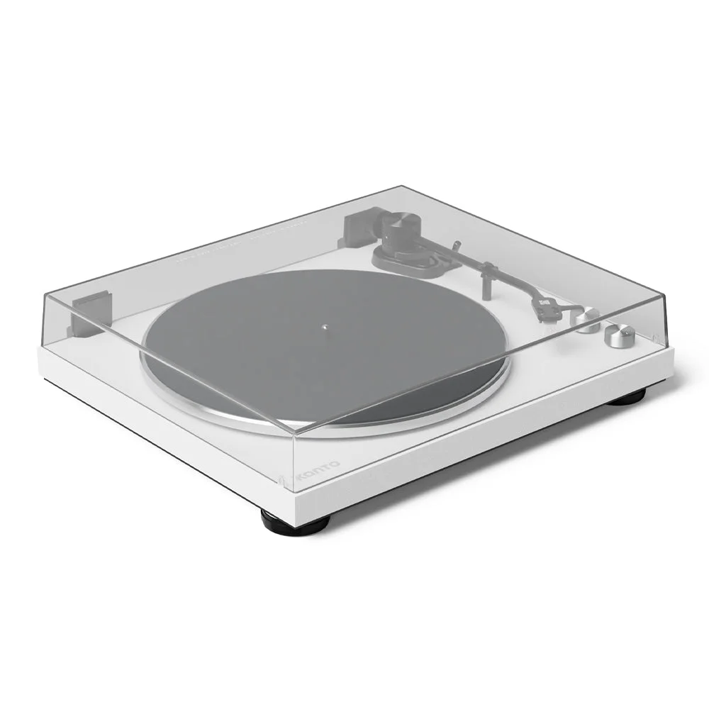 Kanto OBI3 Turntable with Bluetooth 5.3, Preamp, and Pitch Control - Matte White - Kanto OBI3 Belt Drive Turntable with Phono Preamp -Bring the warmth of vinyl into your home with a turntable that blends timeless character with modern convenience. The Kanto OBI3 is designed to look as good as it sounds, with its clean, seamless finish, flush-mounted hinges, and a polished aluminium platter.Enjoy the tactile feel of vinyl with thoughtful details, like a responsive pitch control knob that lets you slow things down, speed them up, and explore new layers in your favourite records.With the flexibility of Bluetooth 5.3 for wireless listening or a classic RCA connection with the built-in phono preamp, the OBI3 works seamlessly with just about any speaker setup. Outfitted with the trusted Audio-Technica AT3600L cartridge, it delivers smooth, balanced sound that makes your records shine. Stylish, easy to use, and ready to play straight out of the box, the Kanto OBI3 makes rediscovering your vinyl collection a pleasure.