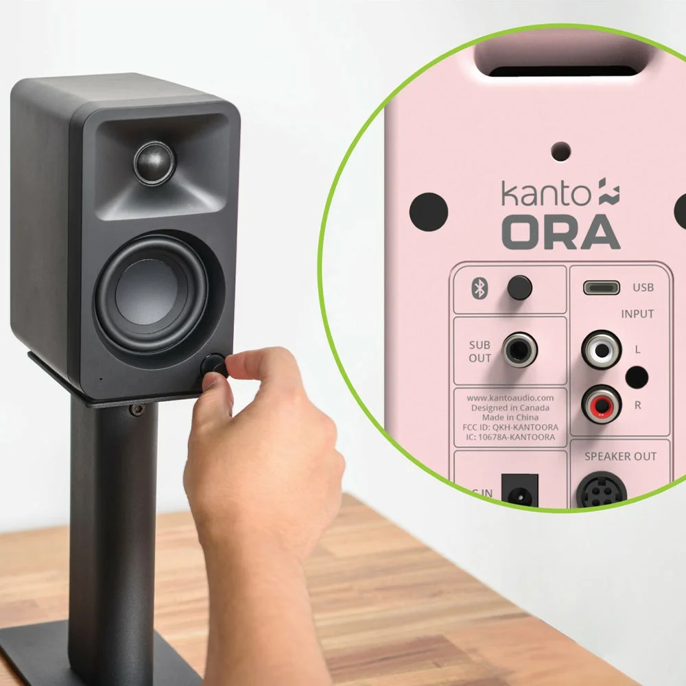 Kanto ORA 100W Powered Reference Desktop Computer Speakers with Bluetooth 5.0 Pink - Everything a desktop speaker should be. Creator. Gamer. Musician. ORA bridges the gap between computer speakers and studio monitors giving you studio-grade, audiophile-approved sound without dominating your space. ORA has modern inputs like USB-C to get the best sound from your PC or Mac, Bluetooth 5.0 to pair with your phone or smart home device, and RCA for your analog gear. Sporting a crossover that automatically sends bass to a connected subwoofer, you get flawless low-end integration freeing up the 3” woofers and ¾” silk dome tweeters to focus on what they do best. ORA is the perfect blend of reference-quality sound and modern features at a compact size to fit on your desktop.