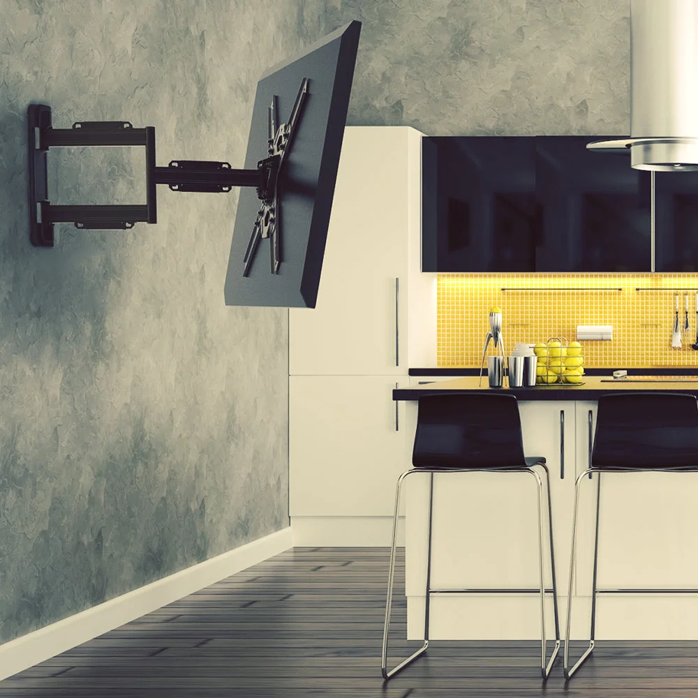 Kanto PS300 Full Motion TV Wall Mount for 25" - 75" TVs, Black - Kanto PS300 Full Motion TV Wall Mount. The Kanto PS300 makes positioning your TV effortless. With up to 560 mm of extension from the wall, along with smooth swivel and tilt adjustments, you can always find the perfect viewing angle. When not in use, simply push it back to sit neatly against the wall for a clean, low-profile look. Designed for TVs from 25" to 75", the PS300 only needs a single stud for installation, yet still delivers exceptional stability and flexibility. Built from solid steel for long-lasting durability, it also includes a cable management system to keep your setup tidy and clutter-free.