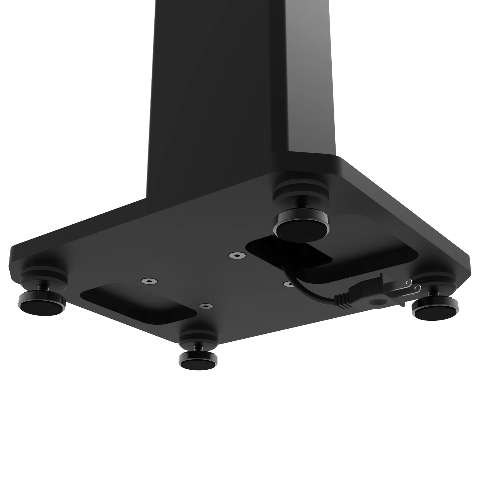 ISOLATING WITH LOW RESONANCE - Bespoke isolation system and hard floor discs with silicone pads help to further isolate the speakers and stands from the floor. A fillable column with included bags for substrate reduces potential resonance.