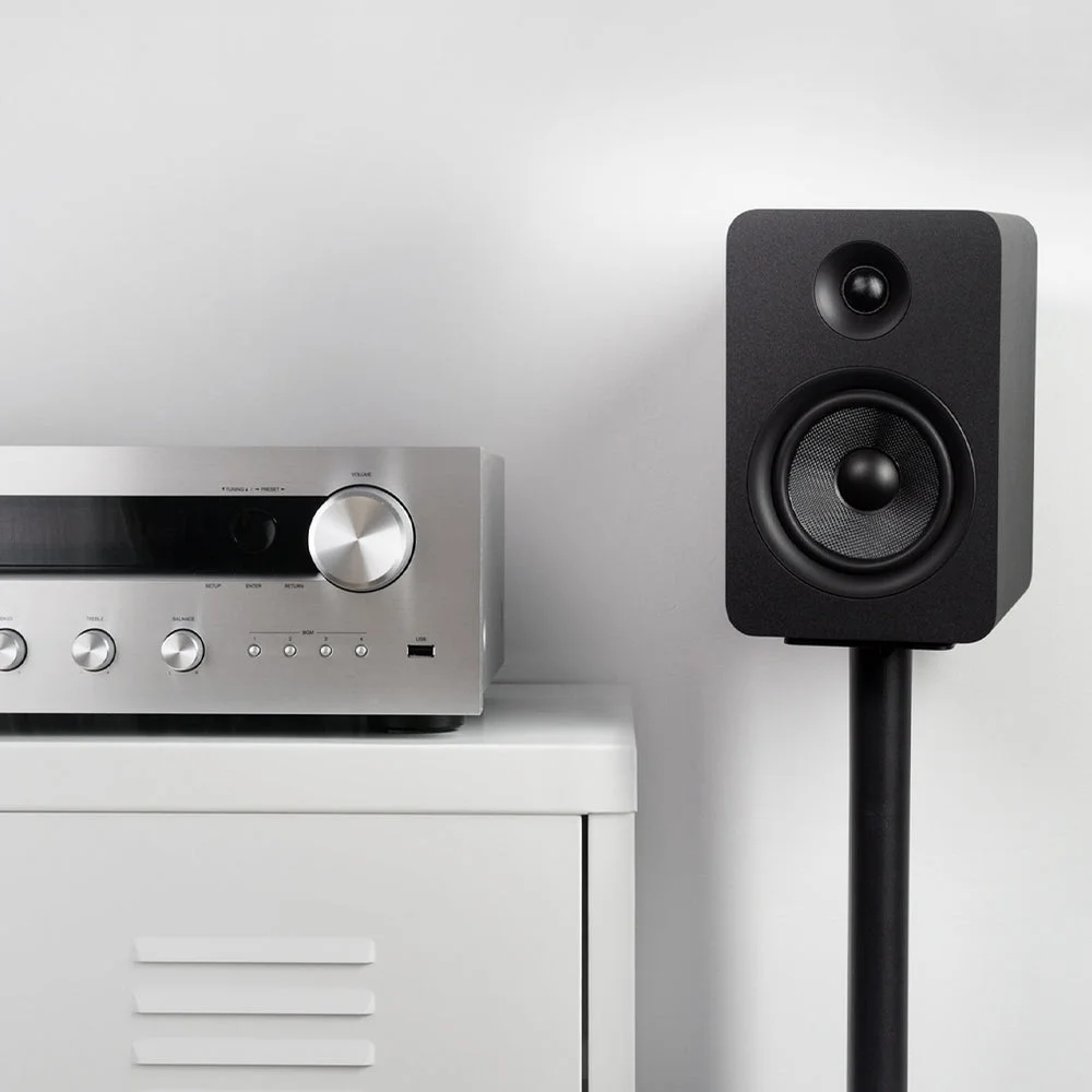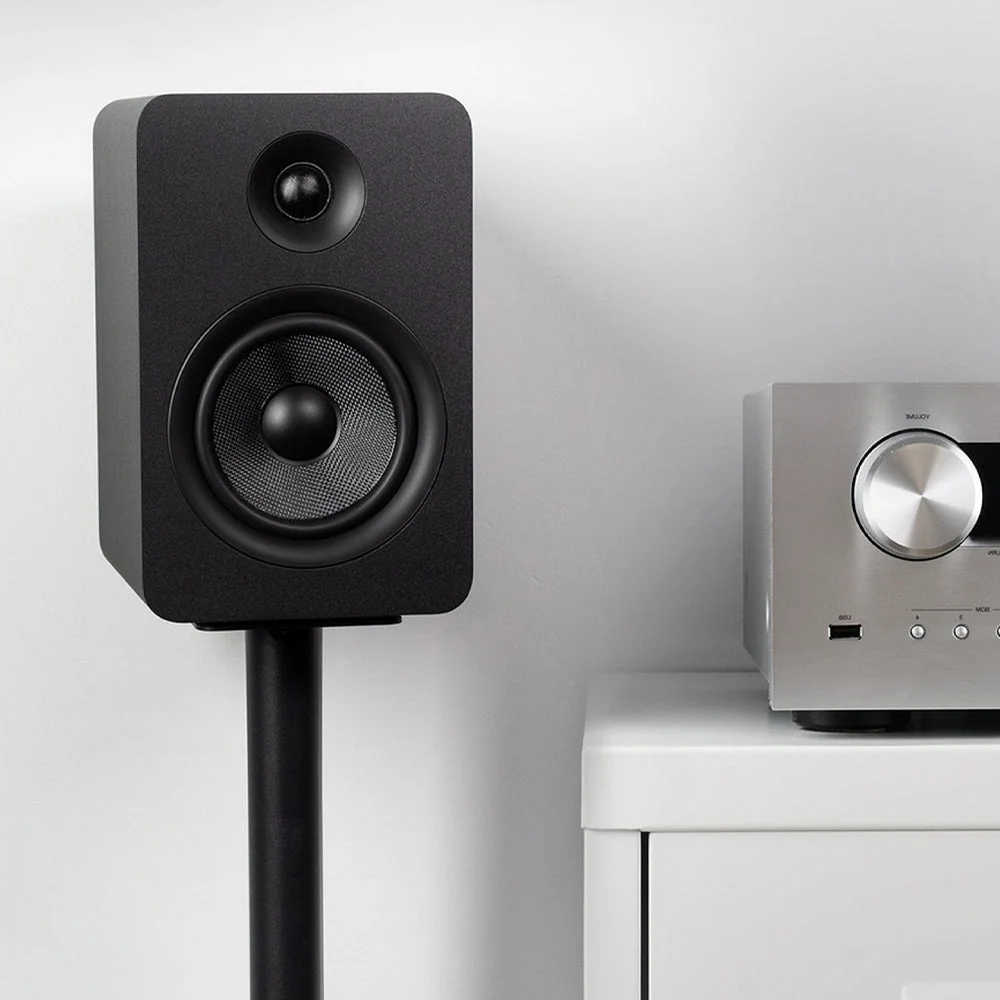 Equipped with powerful 5.25-inch Kevlar woofers and 1-inch silk dome tweeters, the YU Passive 5.25" delivers a neutral, balanced sound profile with excellent clarity and natural tone. Whether placed on a desktop with a DAC/amp combo or integrated into a two-channel or home theatre system, these speakers are designed to adapt and impress. A bottom-mounted ¼”-20 threaded insert ensures compatibility with Kanto speaker stands for secure and acoustically optimized placement.