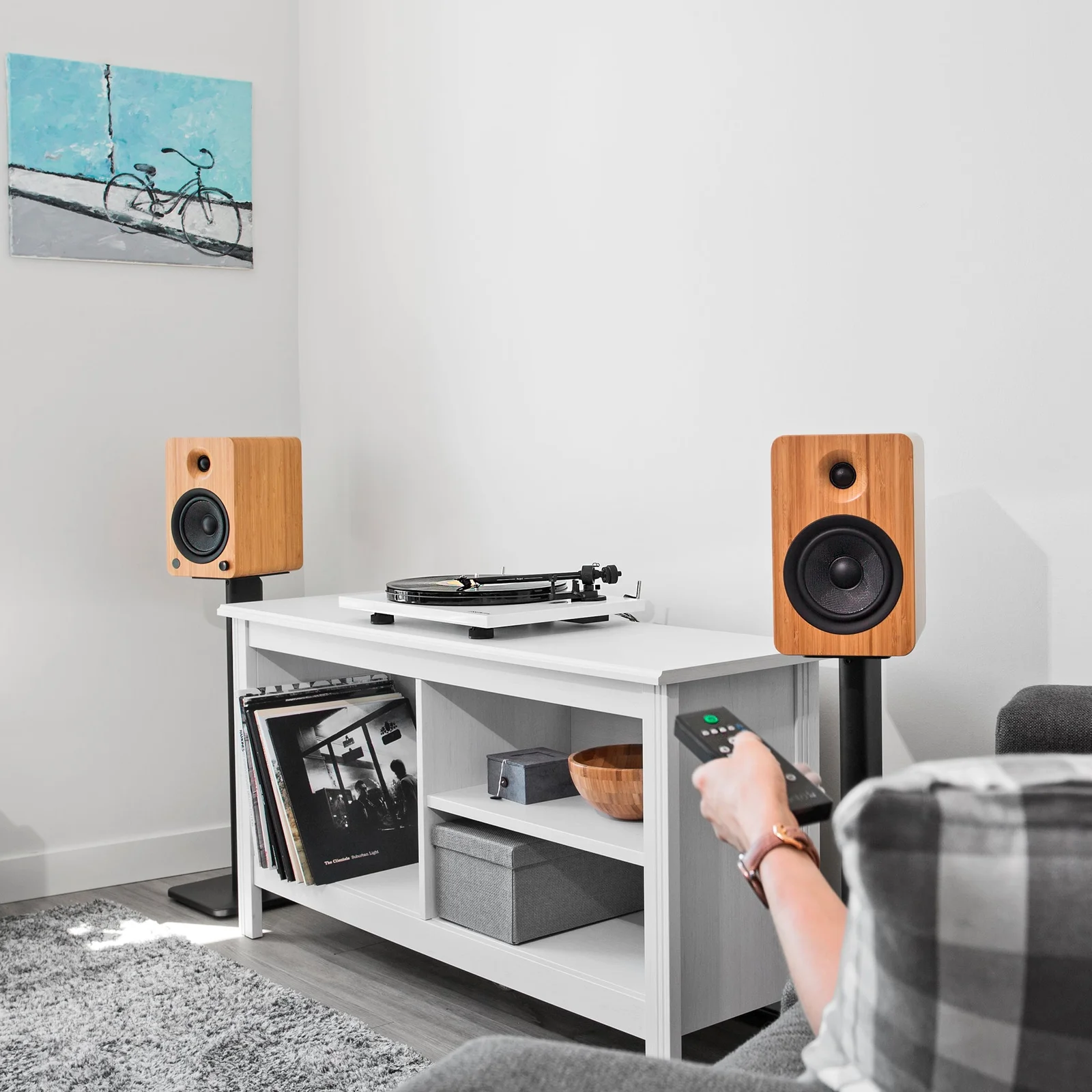 Kanto YU6 200W Powered Bookshelf Speakers with Bluetooth® and Phono Preamp - Pair, Bamboo - Undeniably loud. Satisfy your craving for powerful, full-impact sound with YU6. Armed with a formidable Class D amplifier pumping out 200W peak power, YU6 will have you questioning what it really means to be loud. Its 5.25” Kevlar® drivers and 1” silk dome tweeters inject detailed sound into every square inch of living space, evoking emotions that can only be expressed with an ear-to-ear grin. A built-in phono preamp makes it easy to spin your favourite tunes, while Bluetooth® connectivity lets you keep the party going from the palm of your hand.