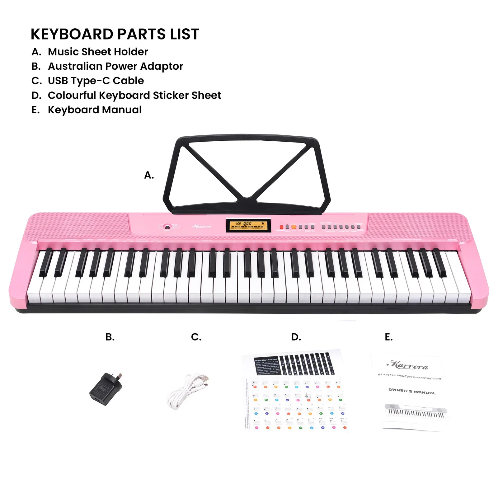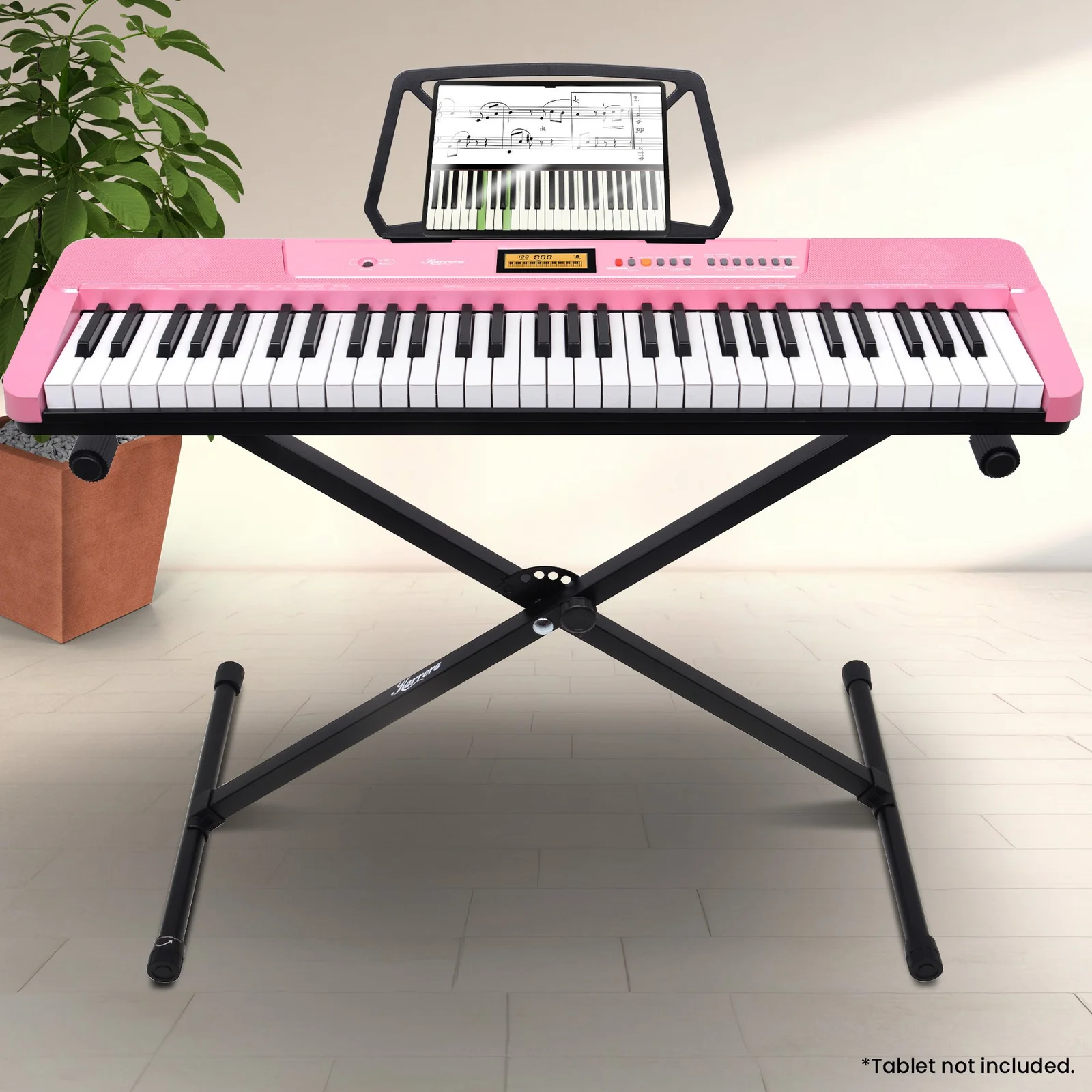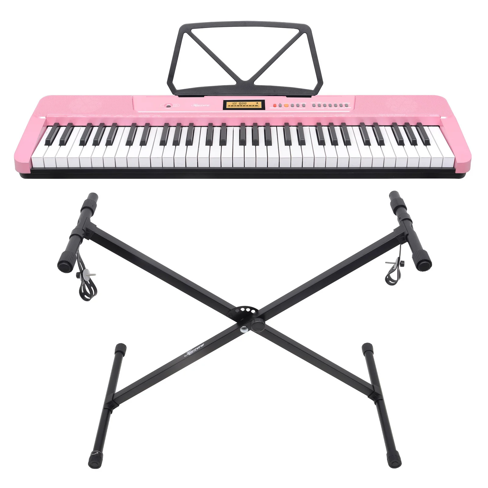 - Music sheet holder and adjustable stand included