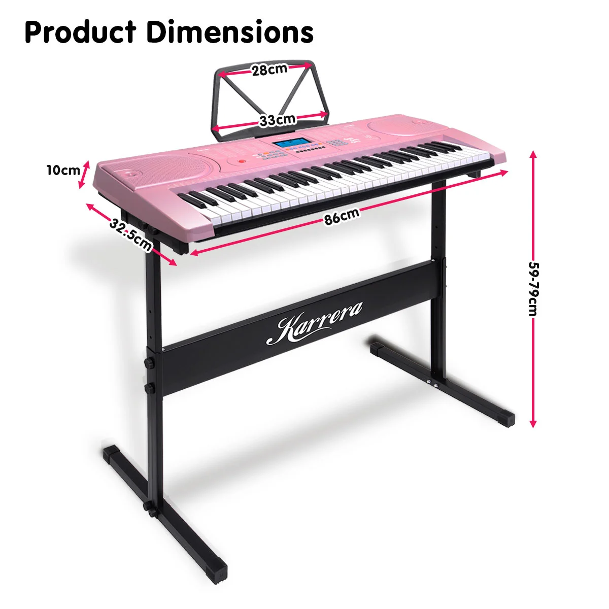 This keyboard is portable and can run on either batteries or a wall cord. It also comes with a keyboard stand and music sheet holder for a smooth playing experience. Feel like a pro while you hone and develop your playing skills!