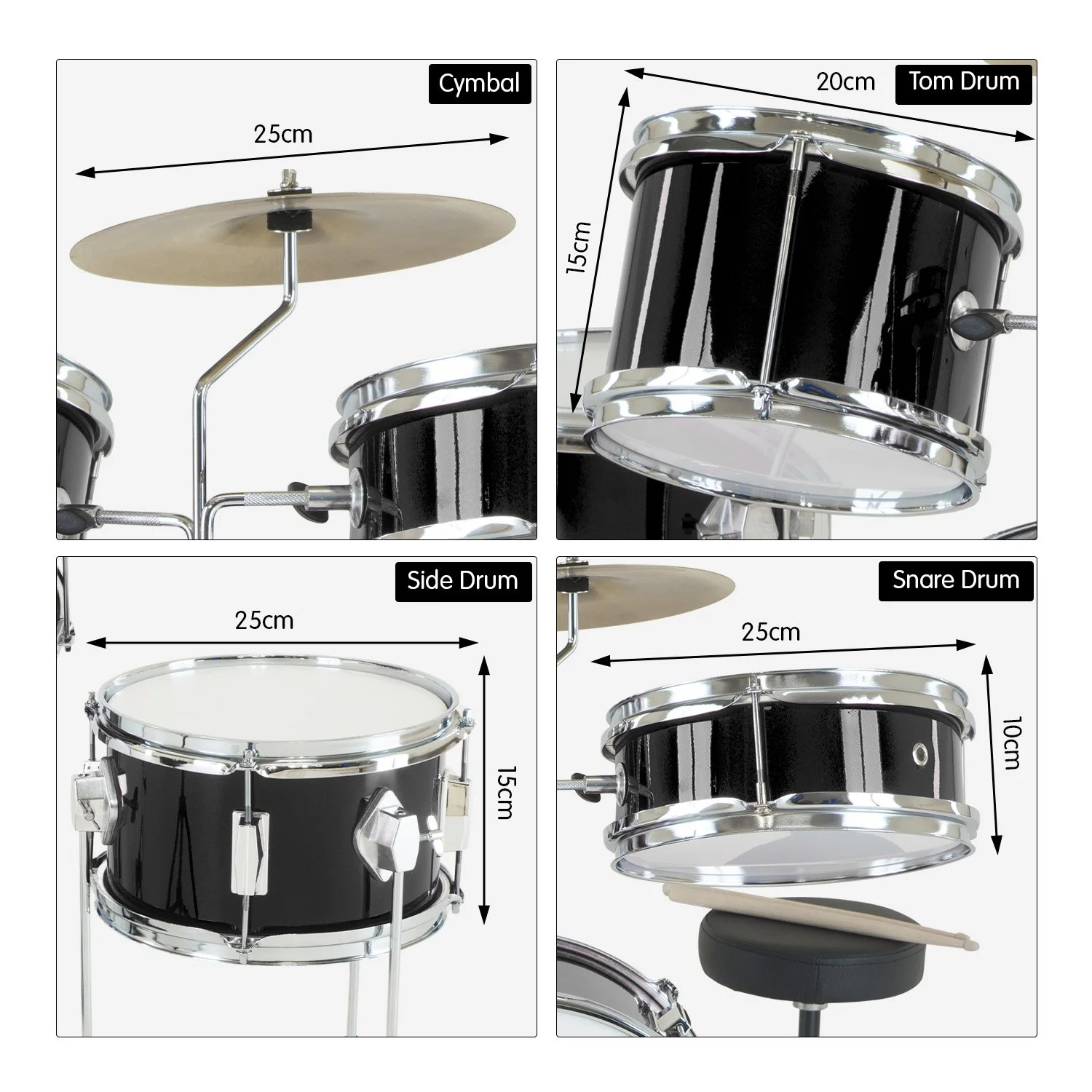 - 4-piece kids’ drum kit
