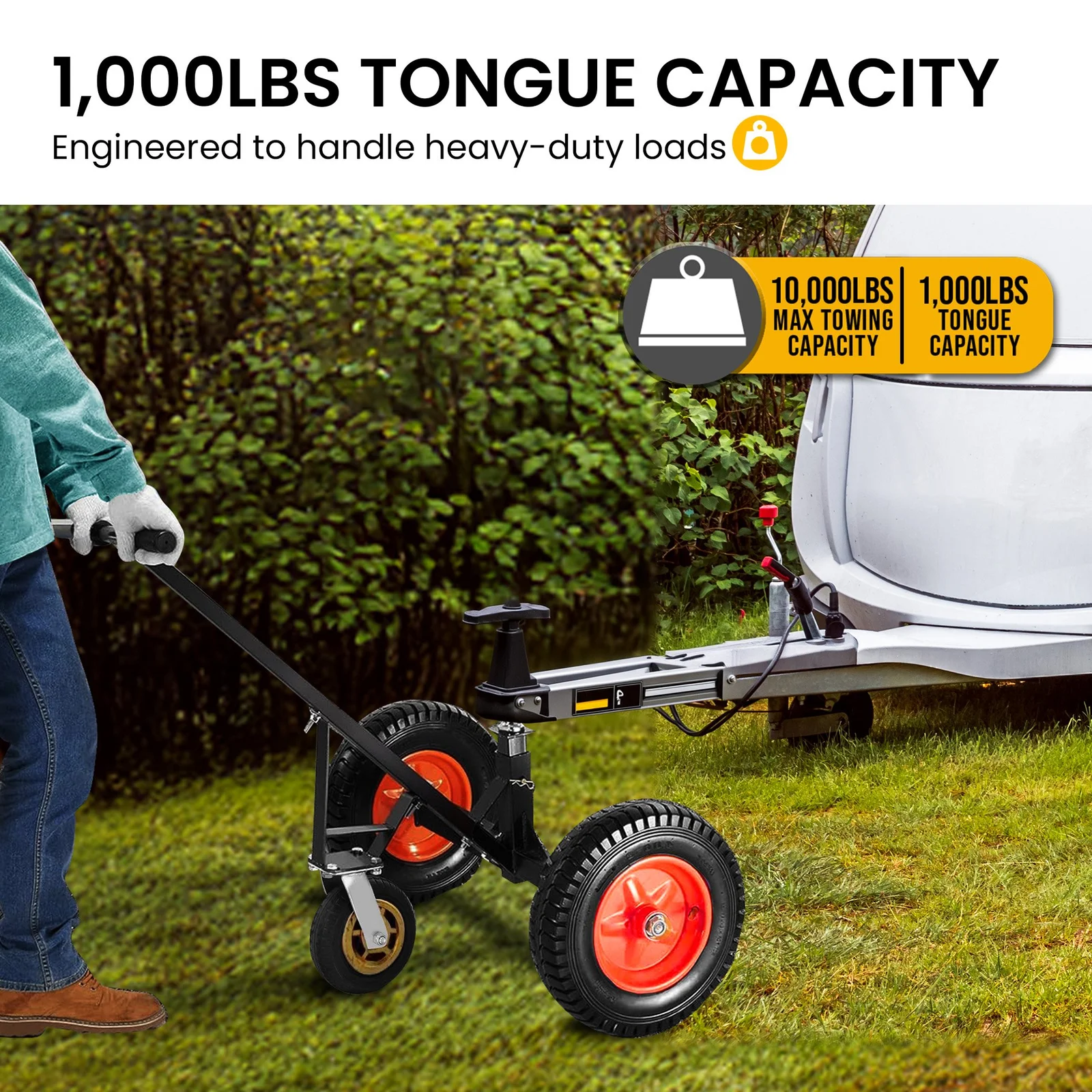 Kartrite 3-Wheel Adjustable Trailer Dolly Heavy Duty Caravan Mover 1000 lbs Tongue Capacity Durable Transport Solution