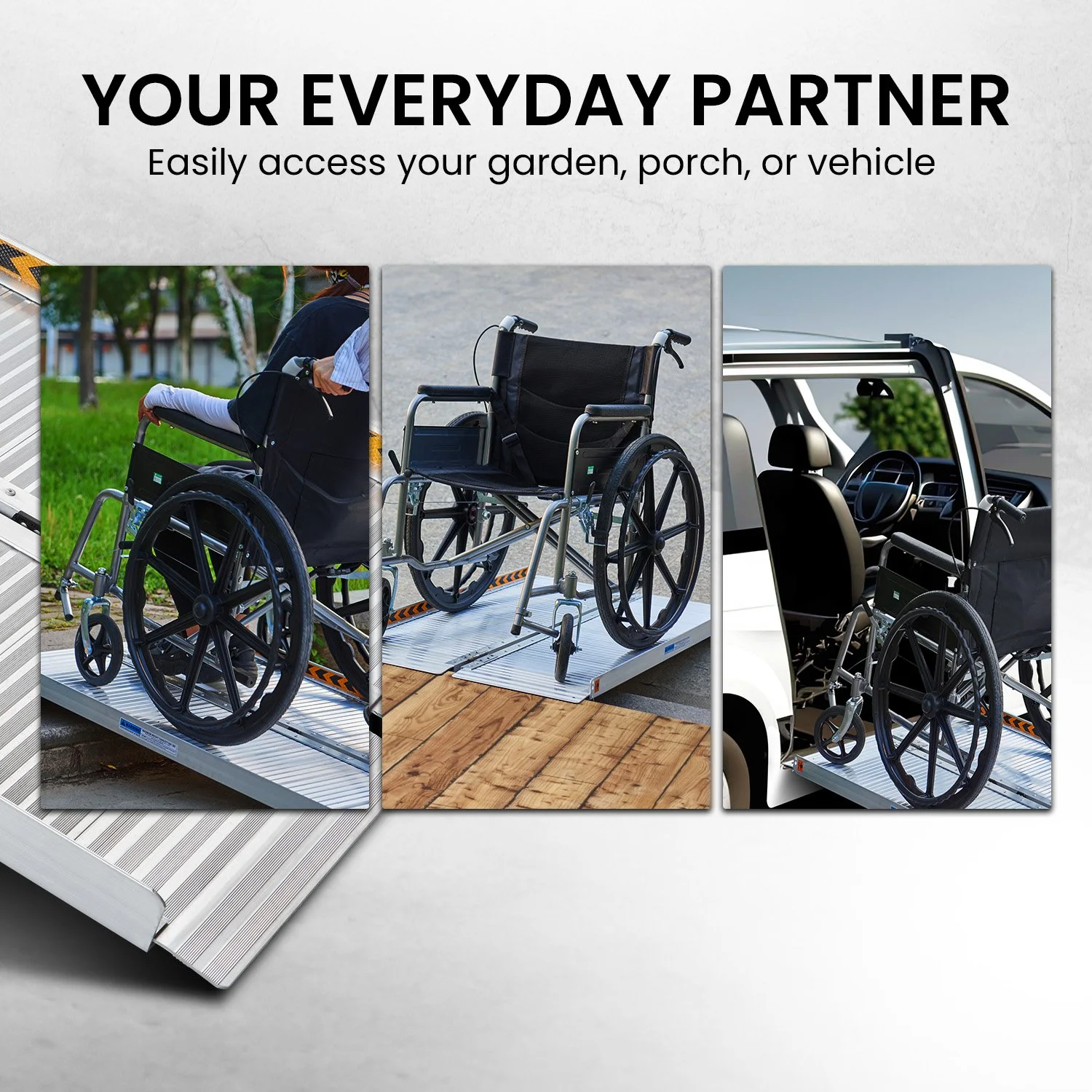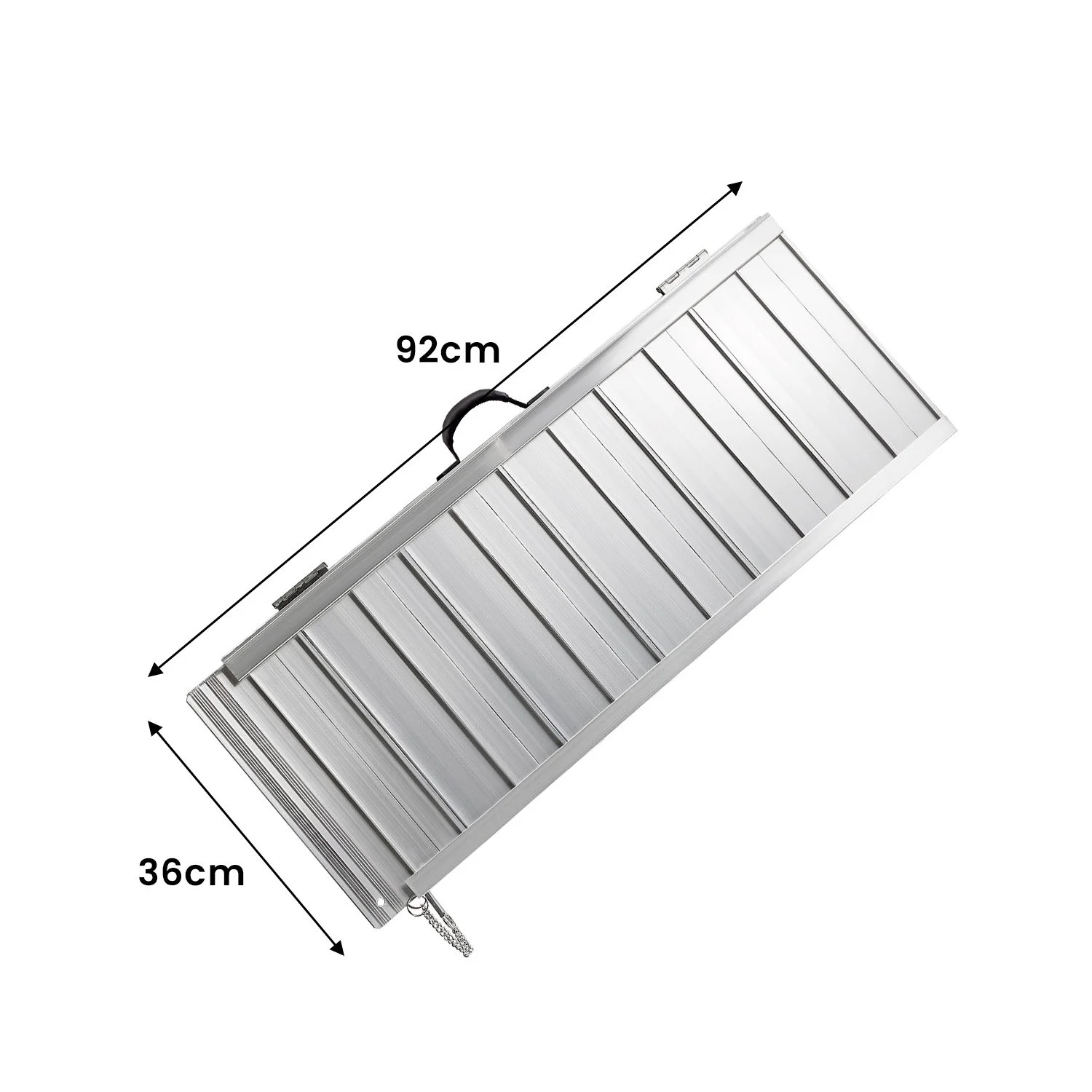This foldable aluminium wheelchair ramp is the ideal solution for climbing steps and kerbs or for getting into your vehicle. It is designed for portability, with a carry handle, locking pin and smart folding design.