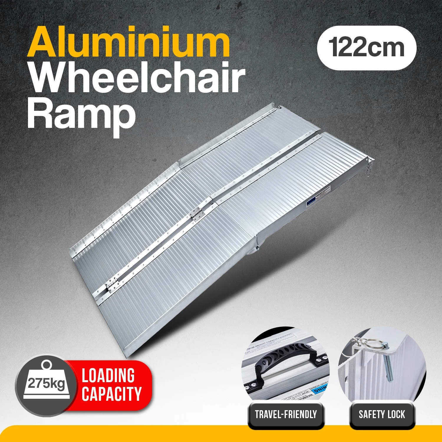 With its high-strength aluminium construction, this ramp can accommodate up to 275kg. The non-slip surface and guardrails ensure your peace of mind and safety. It also comes with a locking pin for maximum convenience.