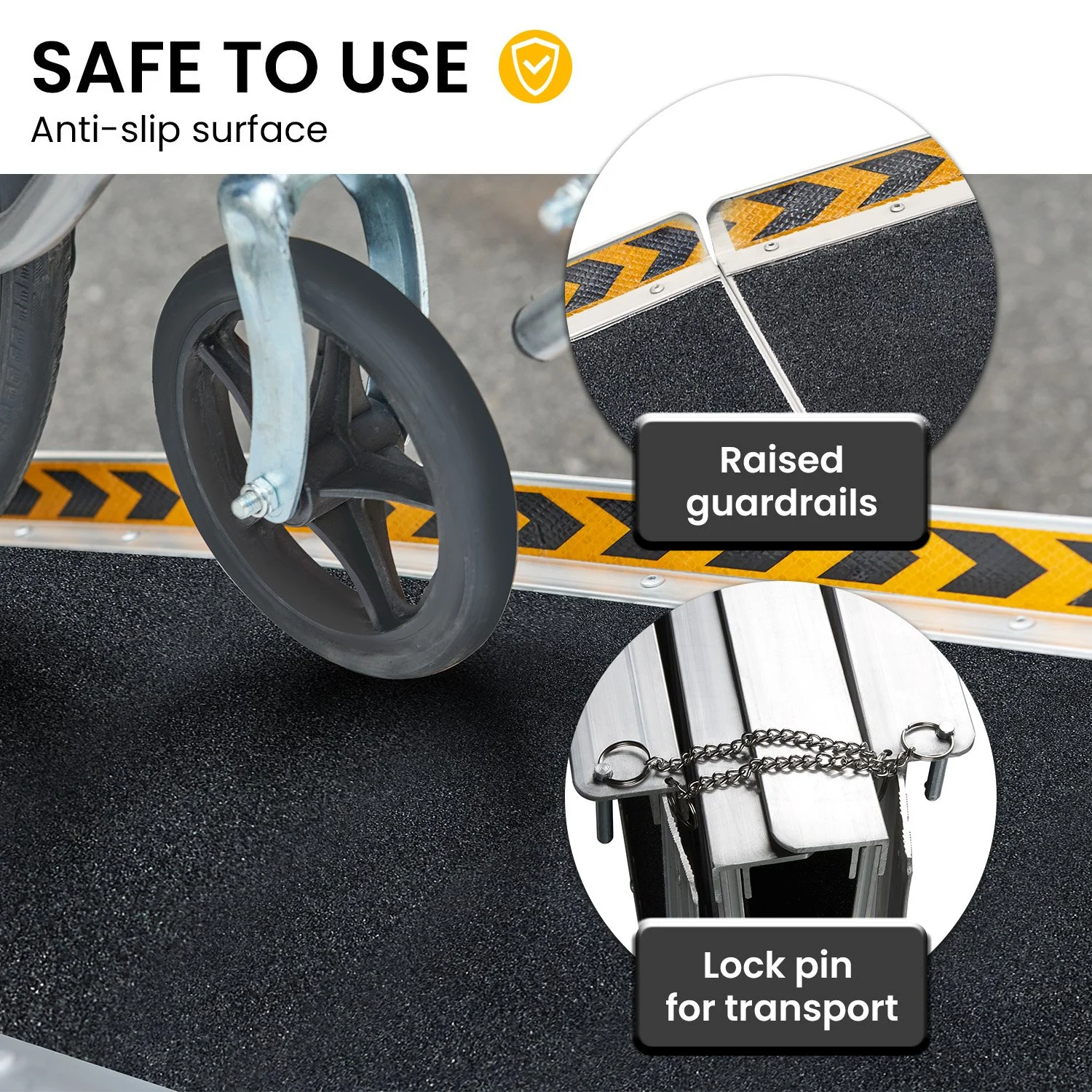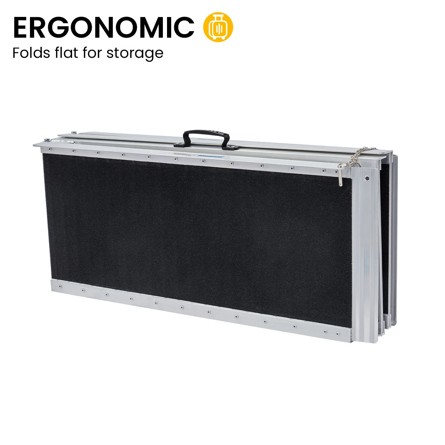 Make mobility simpler with the Kartrite foldable aluminium wheelchair ramp. Designed for wheelchairs, scooters and rollators, it provides safe access to steps, kerbs or vehicles. Its suitcase style fold makes it easy to carry and store, while the anti slip surface and raised side rails add security. Built from high strength aluminium, it supports up to 272kg, offering reliable use at home or outdoors.