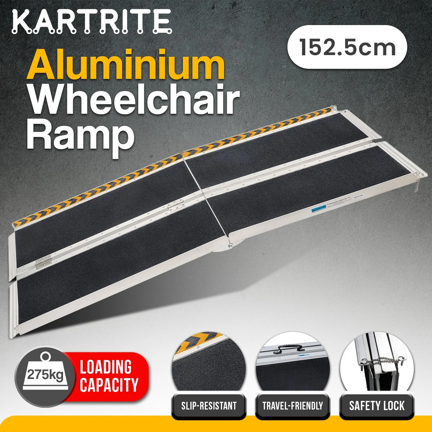 Make mobility simpler with the Kartrite foldable aluminium wheelchair ramp. Designed for wheelchairs, scooters and rollators, it provides safe access to steps, kerbs or vehicles. Its suitcase style fold makes it easy to carry and store, while the anti slip surface and raised side rails add security. Built from high strength aluminium, it supports up to 272kg, offering reliable use at home or outdoors.