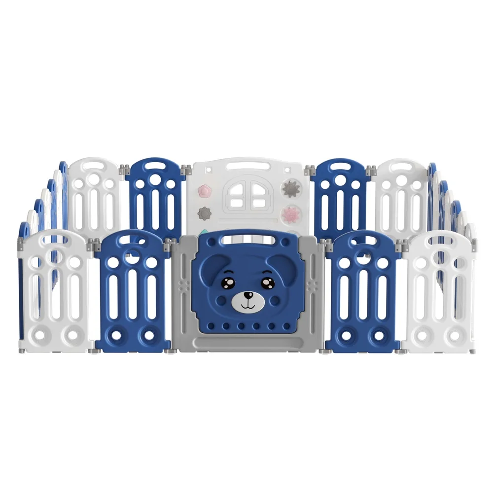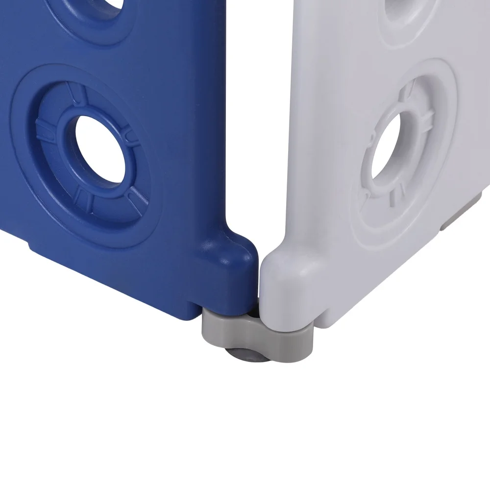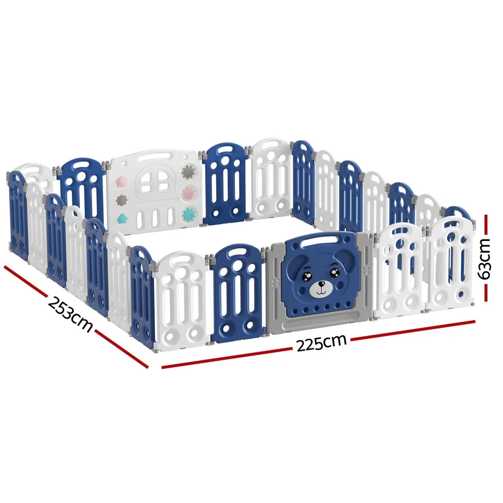 As a parent, sometimes you need a moment to catch your breath while keeping a watchful eye on the little ones. Keep your children safe and sound while you work with a Keezi Baby Playpen. The pen is made from quality HDPE material that is child-safe, non-toxic and easy to clean. It features a flexible 24-panel arrangement with no sharp edges and a safe 60cm or 63cm height to prevent your child from crawling out. Each panel is connected to a hinge, and the main door panel has a safety lock to prevent a cheeky escape. Anti-slip suction cups keep the playpen firmly in one place. Easily assemble, fold and unfold the playpen for portability and simple storage (Note: the door needs to be removed to fully fold). When you need a safe space for your child, Keezi has you covered with the Keezi Baby Playpen.