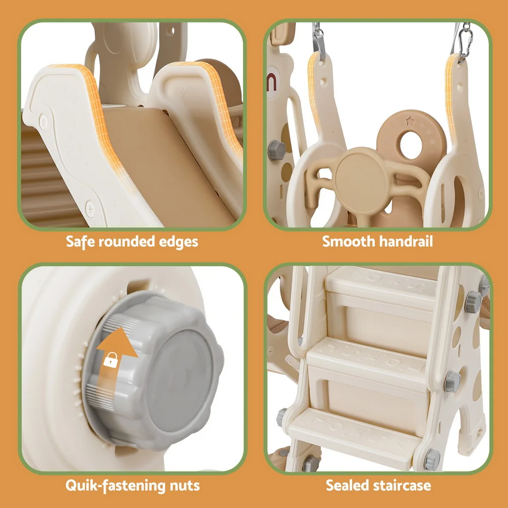 Let your kids enjoy endless fun while staying active with our exciting 3-IN-1 Slide and Swing Set! Designed for toddlers, this play set features a long slide, a child-safe swing, and a ring game with an included ball, providing hours of entertainment. The wide, anti-slip steps ensure safe climbing, while the secure grip handles offer extra stability for little hands.