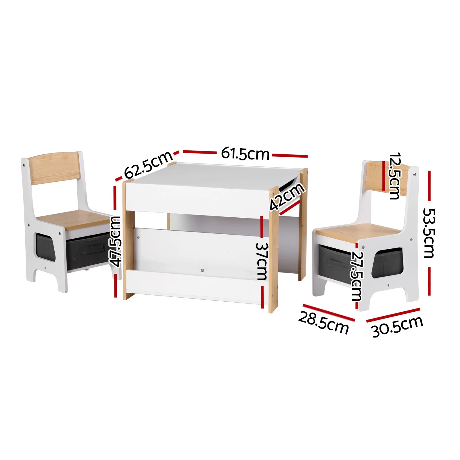 This multifunctional kids table and chairs set creates a dedicated space for learning, creativity and play. Featuring a reversible tabletop, smart storage solutions and a child-friendly design, it supports everyday activities while keeping rooms neat and organised.