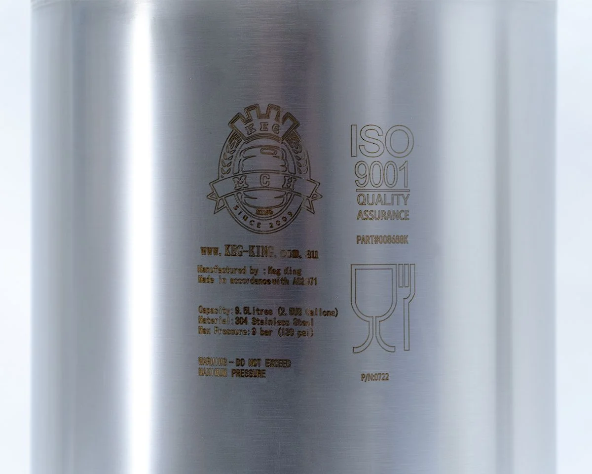 Constructed from food grade 304 Stainless Steel Keg King 9.5L Ball Lock Kegs are built in compliance with AS2971.