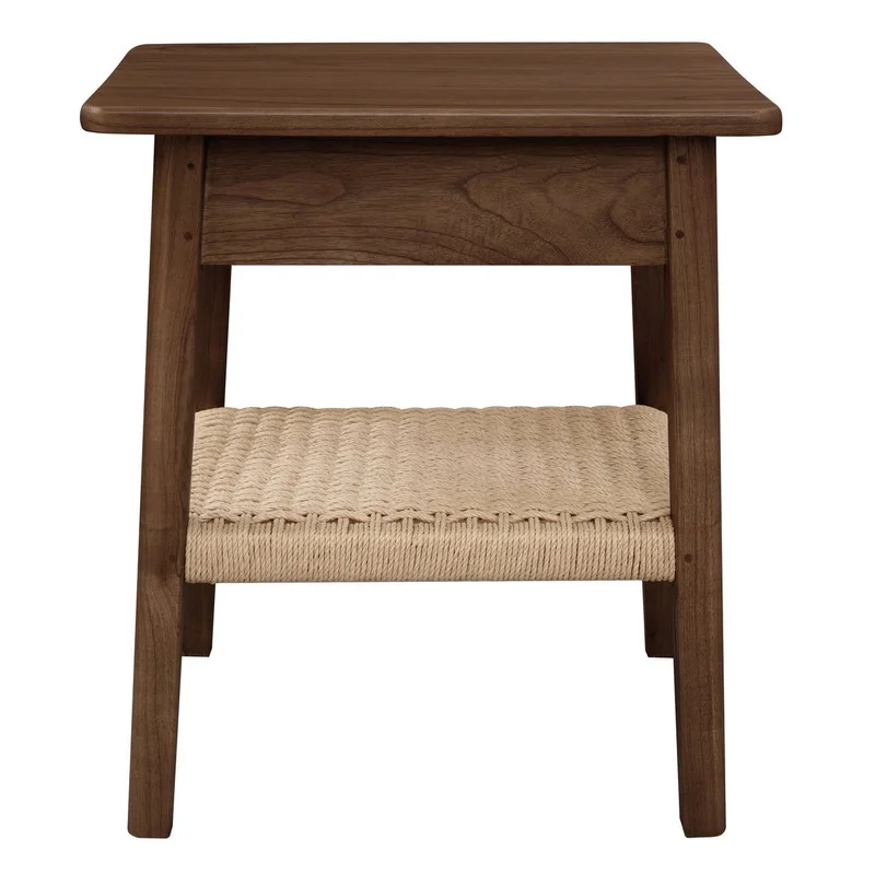 Bring a touch of mid-century style to your space with the Kelly One Drawer Bedside. Made from Solid Mindi timber (White Cedar), this piece showcases the natural beauty of the wood, highlighted by a smooth almond finish that enhances its warm, organic texture. The solid brass handle offers a classic look, while the handwoven loom shelf adds character and provides extra storage. This bedside table comes fully assembled, so it's ready to use right away. With dimensions of WDH: 50.0 x 45.0 x 55.0 cm, this bedside table combines practical design with a style that suits both modern and mid-century-inspired interiors.