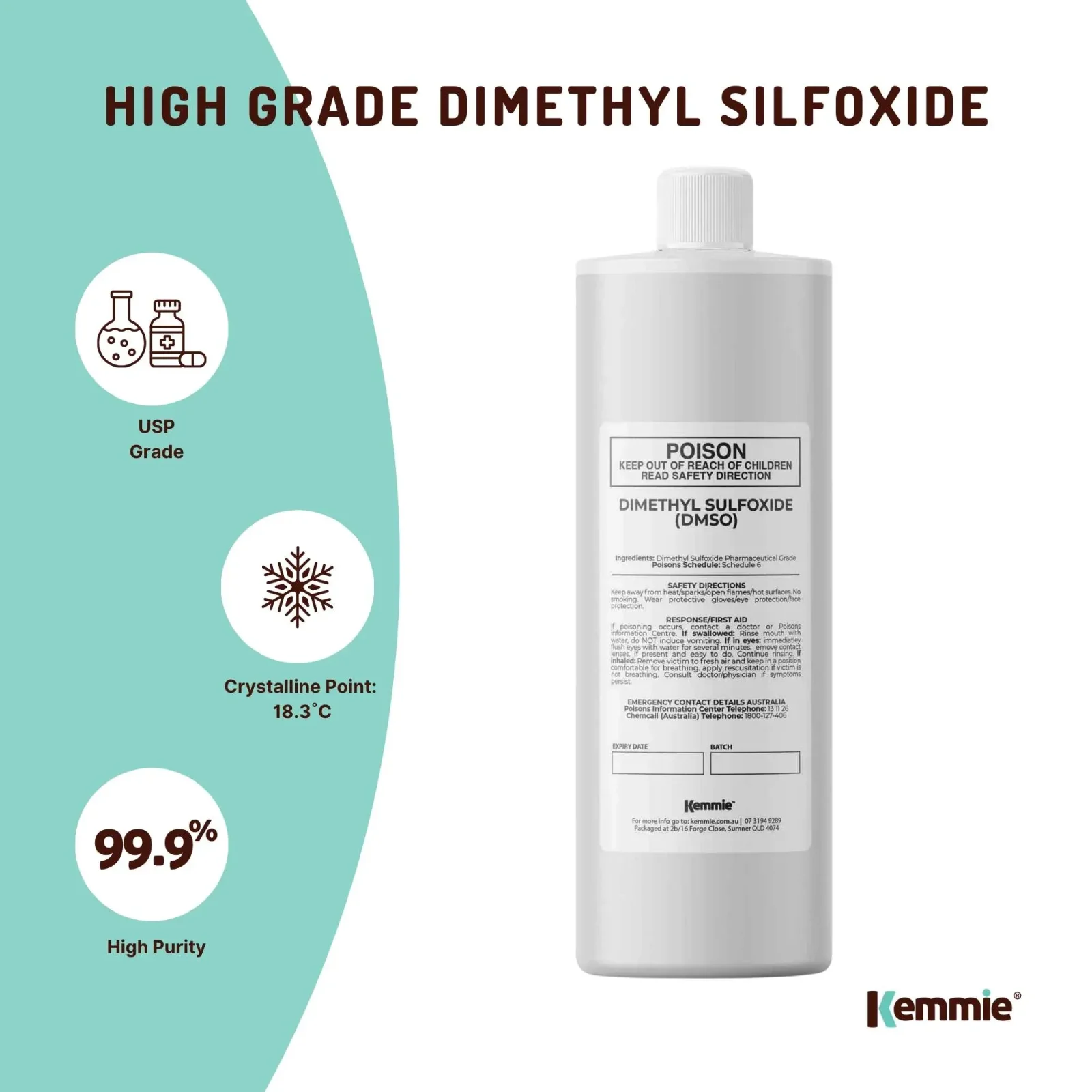 99.9% Pure pharmaceutical Grade DMSO, also known as Dimethyl Sulfoxide.