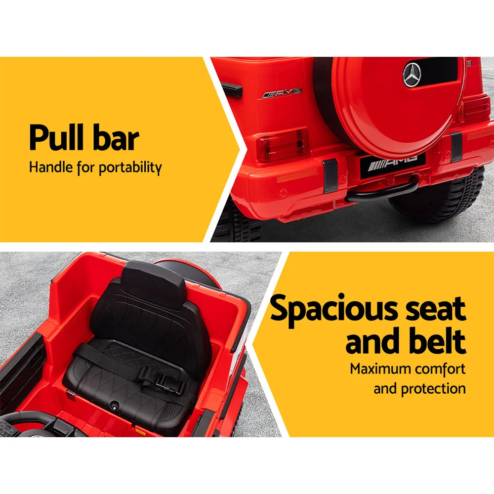 Let your little one experience the excitement of driving a Mercedes-Benz AMG G63. The steering wheel and acceleration pedal to control the forward and reverse movement give your child control and a realistic driving experience. It comes with some cool entertaining features that will allow your child to have hours of fun. It includes a safety seat belt and a remote control for parent supervision, making it the ideal choice for parents who want a safe and fun way for their children to explore their environment. The licensed Mercedes-Benz Ride on AMG G63 is the perfect gift for any young car enthusiast.
