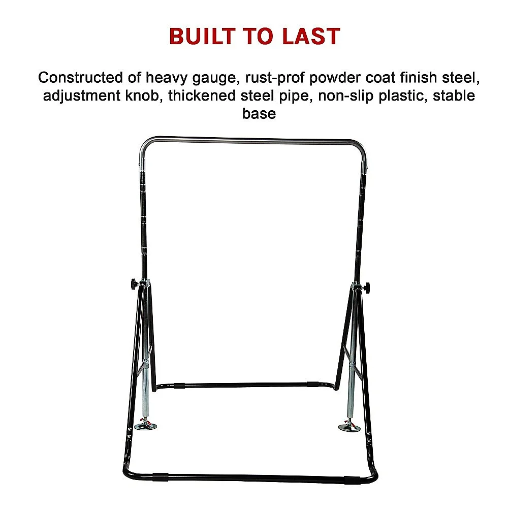 No worries about safety with this equipment. Its triangular structure minimises wiggling and swaying to provide the ultimate in stability. It's easily adjustable to four different heights to suit kids of all ages. All you need to do is to fasten the knob or pull on the quick-adjust knobs on both sides to change the heights. A spin-lock mechanism allows you to adjust in seconds.